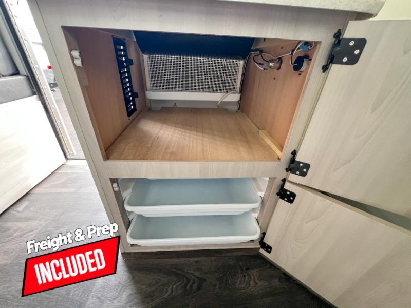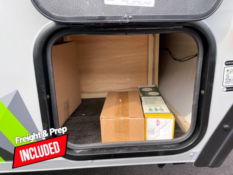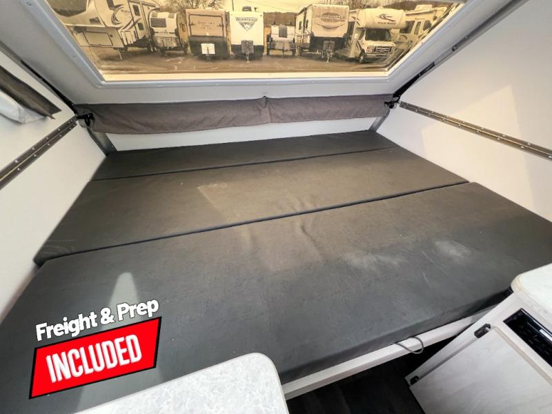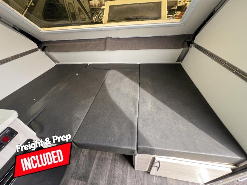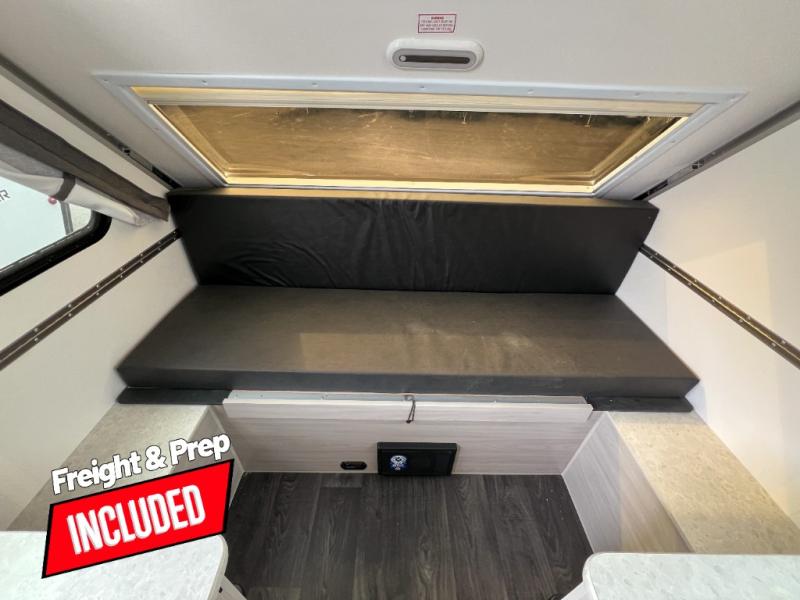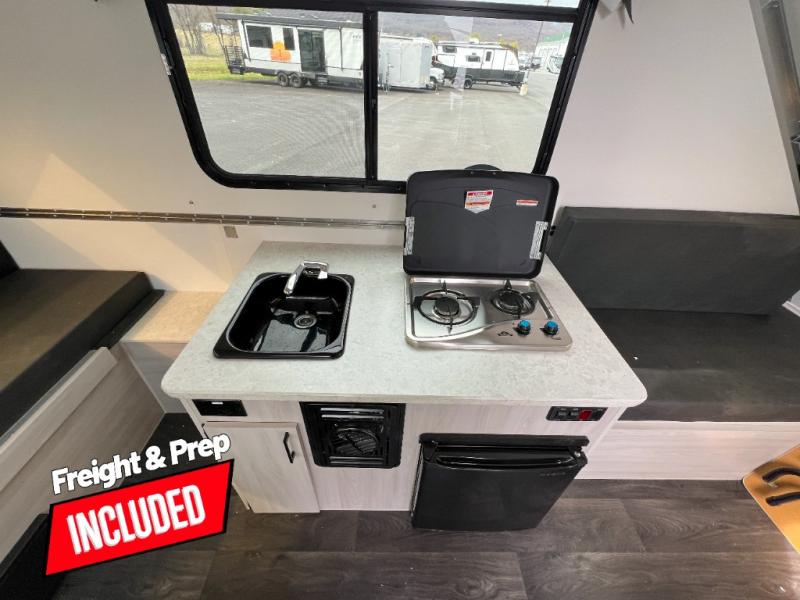 Looking for a camper that you can relax and unwind inside when you aren't exploring outdoors? Need sleeping space for two or three? Well the rear sofa bed in this camper converts into a 56" x 76" bed and the front dinette converts into a 46" x 76" bed. You can prepare delicious meals with the two burner stove, clean up with the sink, and keep your perishables fresh within the 1.7 cu. ft. 12V refrigerator underneath the stove and sink. You might even like to add an optional soft or hard dormer to the front or rear of this unit, and/or the optional Off Road package.