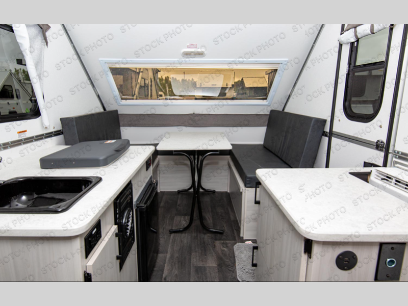 Looking for a camper that you can relax and unwind inside when you aren't exploring outdoors? Need sleeping space for two or three? Well, the rear sofa bed in this camper converts into a 56" x 76" bed and the front dinette converts into a 46" x 76" bed. You can prepare delicious meals with the two-burner stove, clean up with the sink, and keep your perishables fresh within the 1.7 cu. ft. 12V refrigerator underneath the stove and sink. You might even like to add an optional soft or hard dormer to the front or rear of this unit, and/or the optional lift kit and off-road tires.