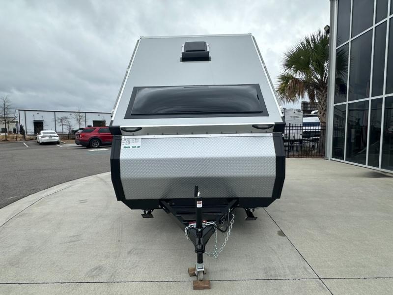 The Scout A-frame camper by Aliner is constructed with a 5" tubular steel frame, Azdel composite roof/sidewalls, and Lexan skylights for more natural lighting. The Dexter rubber torsion axle, 10" electric brakes, and aluminum wheels will make it easier than ever to tow, and there are four stabilizer jacks for added stability at the campground. You'll find two baggage doors to keep your gear stored away, and there is a bike rack receiver if you plan to hit the trails. The optional dormers (front or rear) (hard or soft) will give you the ability to add head space to your camper, and you may even like to add the optional lift kit and 15" off-road tires for better clearance!