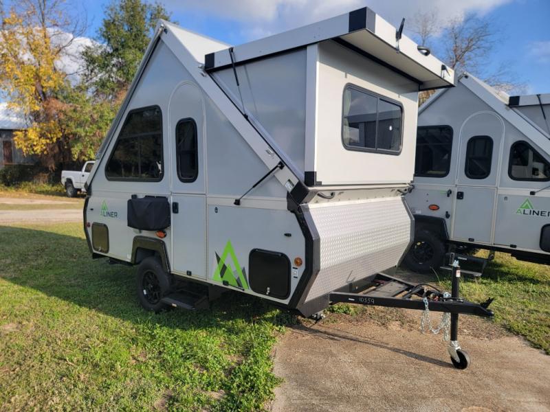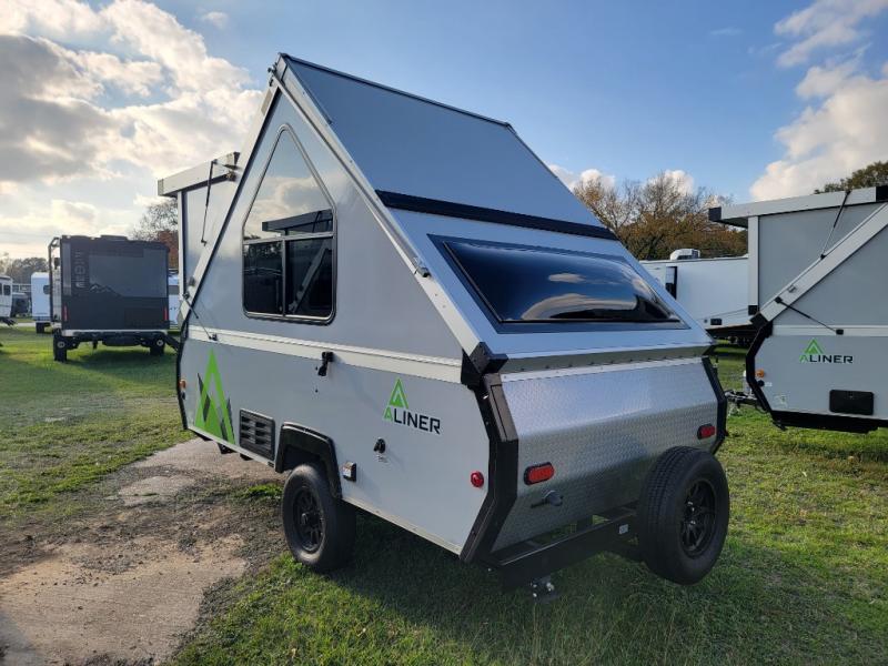 The Scout A-frame camper by Aliner is constructed with a 5" tubular steel frame, Azdel composite roof/sidewalls, and Lexan skylights for more natural lighting. The Dexter rubber torsion axle, 10" electric brakes, and aluminum wheels will make it easier than ever to tow, and there are four stabilizer jacks for added stability at the campground. You'll find two baggage doors to keep your gear stored away, and there is a bike rack receiver if you plan to hit the trails. The optional dormers (front or rear) (hard or soft) will give you the ability to add head space to your camper, and you may even like to add the optional lift kit and 15" off-road tires for better clearance!