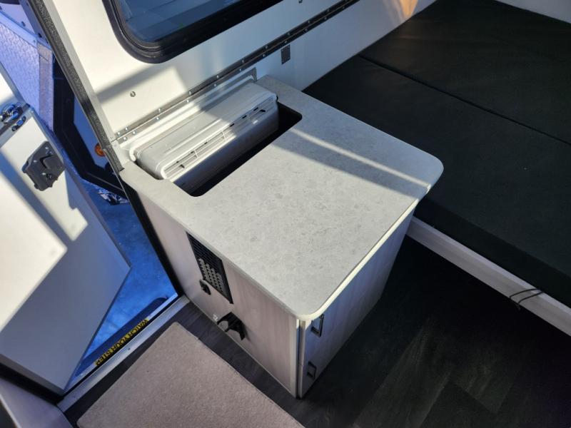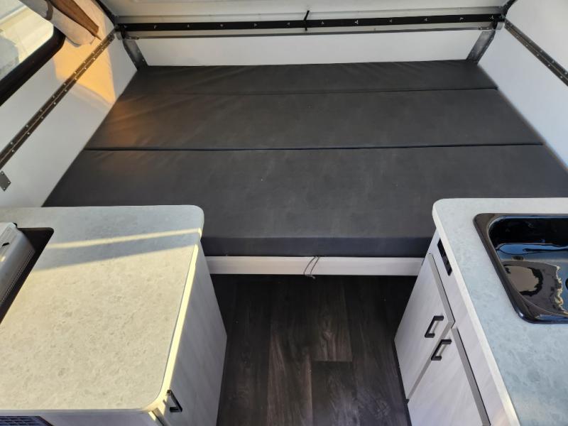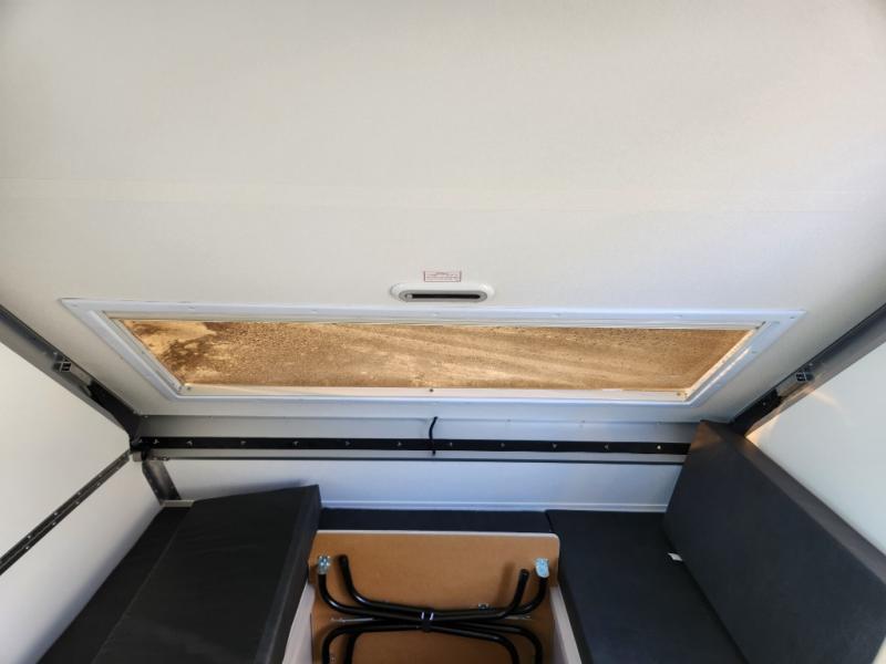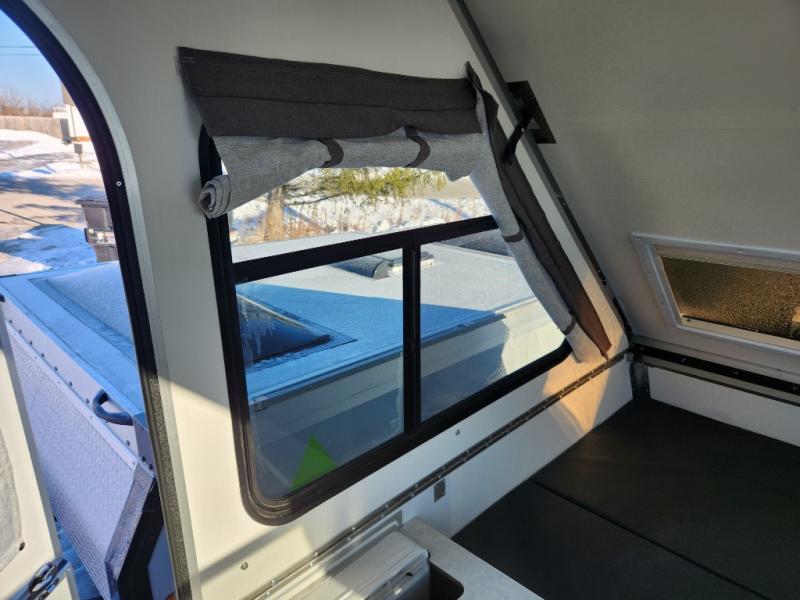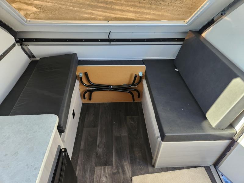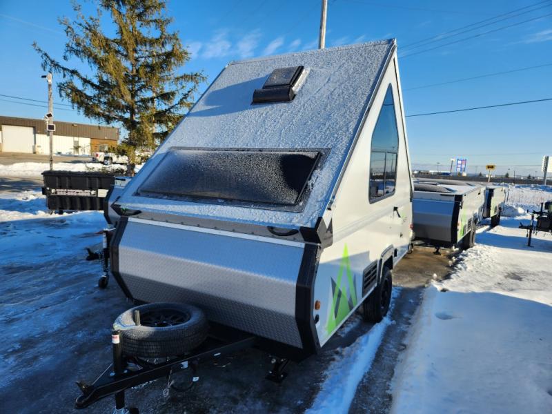 Get ready to sleep above ground as you upgrade from tent camping to this A-frame camper! It is easy to tow, set up and store when the fun is over. Inside you will find ample storage for your gear, a dinette to dine at when you aren't outside, and a sofa bed to relax on before bedtime. The dinette converts to a 46" x 76" bed, and the rear sofa converts to a 56" x 76" bed. There are three electrical outlets inside to keep your phone and camera charged, and the LED lights will help keep your space well lit. An optional 1.7 cu. ft. 12V refrigerator can be added, along with an optional side-mount A/C unit and optional 200-watt solar panel for added convenience!