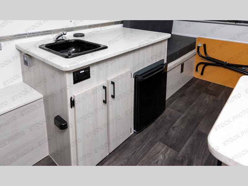 Get ready to sleep above ground as you upgrade from tent camping to this A-frame camper! It is easy to tow, set up and store when the fun is over. Inside you will find ample storage for your gear, a dinette to dine at when you aren't outside, and a sofa bed to relax on before bedtime. The dinette converts to a 46" x 76" bed, and the rear sofa converts to a 56" x 76" bed. There are three electrical outlets inside to keep your phone and camera charged, and the LED lights will help keep your space well lit. An optional 1.7 cu. ft. 12V refrigerator can be added, along with an optional side-mount A/C unit and optional 200-watt solar panel for added convenience!
