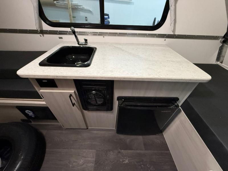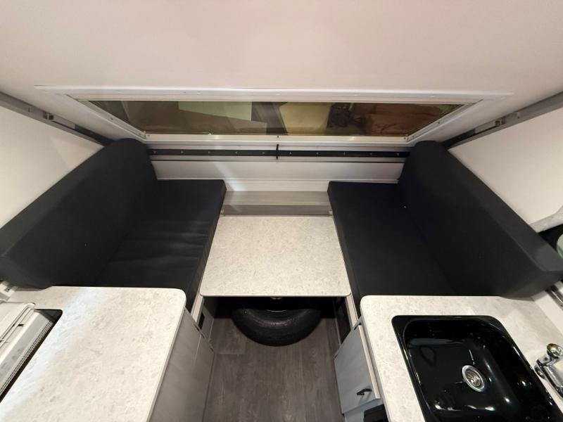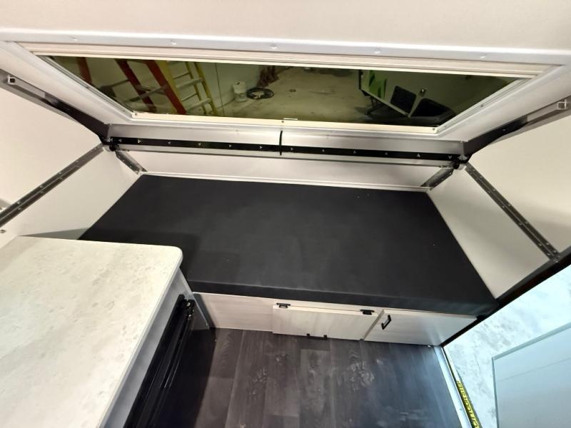 When all you need is the basics to camp, this Scout Lite will be perfect for you! There is sleeping space on either the front 30" x 76" bed or the rear dinette which converts into a 40" x 76" bed. There is plenty of storage throughout between the storage under the front bed, under the sink, and the exterior baggage door. And you can keep everything charged with the two electrical outlets inside and the one exterior electrical outlet!