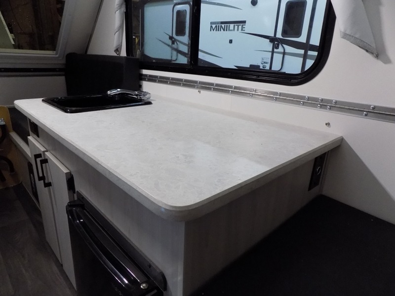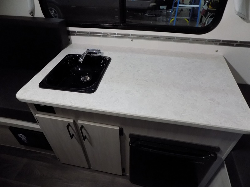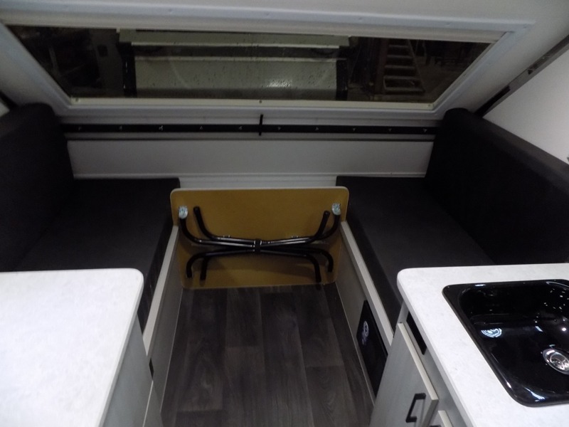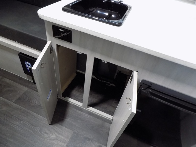 When all you need is the basics to camp, this Scout Lite will be perfect for you! There is sleeping space on either the front 30" x 76" bed or the rear dinette which converts into a 40" x 76" bed. There is plenty of storage throughout between the storage under the front bed, under the sink, and the exterior baggage door. And you can keep everything charged with the two electrical outlets inside and the one exterior electrical outlet!