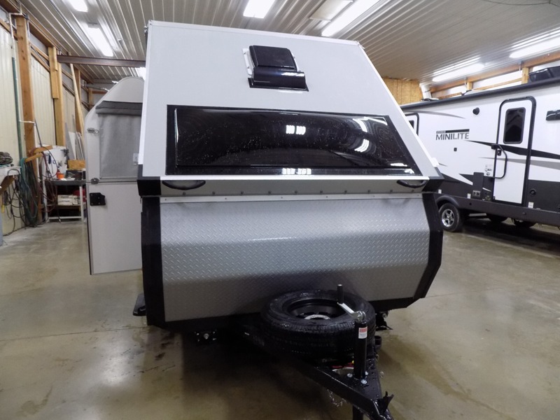 With the Scout Lite A-frame camper by Aliner, the construction includes Azdel composite roof/sidewalls, aluminum wheels, and a 5" tubular steel frame for added durability. The 1,190 lbs. dry weight will make it easier than ever to tow, and the four stabilizer jacks will help keep your camper secure at the campground. An optional front dormer (hard or soft) is available on this model; see dealer for more details!