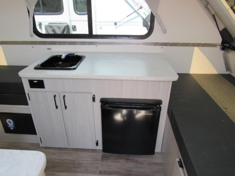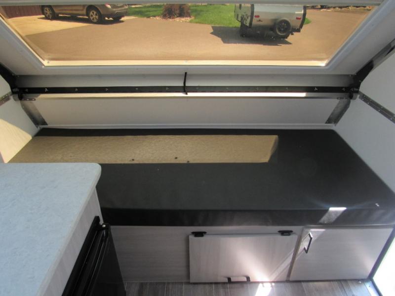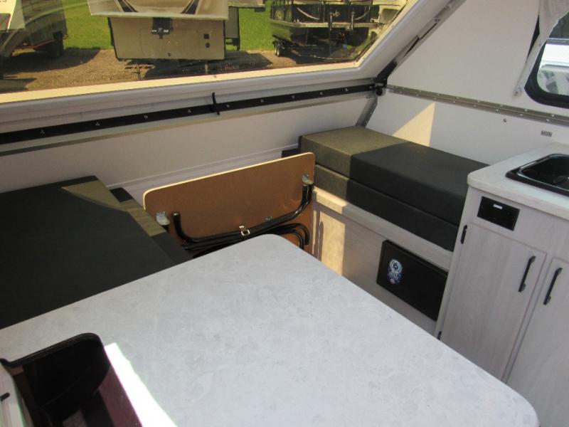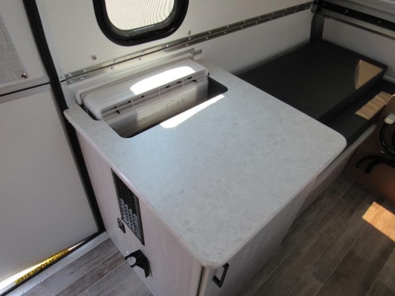 When all you need is the basics to camp because you prefer to be outdoors hiking and exploring, this Scout Lite will be perfect for you! There is sleeping space on either the front 30" x 76" bunk or the rear dinette which converts into a 40" x 76" bed. There is plenty of storage throughout between the storage under the dinette seats, a storage area across from the sink, and storage next to the sink. And you can keep everything charged with the two electrical outlets inside and the one exterior electrical outlet!