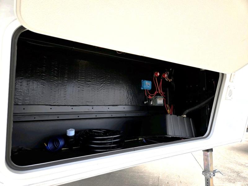 A benchmark chassis creates a space saver upper deck with each one of these Avenue All-Access fifth wheels by Alliance RV! The 101 in. wide-body construction gives you more room to walk around and the flush slide out floors throughout prevent any tripping. There are Azdel composite sidewalls inside and out, and a seamless fully walkable PVC roof for extreme durability and zero maintenance. You are sure to love no carpet throughout making each Avenue All-Access easy to clean and allergen free, not to mention pet friendly. You can maximize your space throughout with innovative storage solutions like the hidden storage behind the TV, inside the end tables, ottoman, and dinette chairs. These units also include the OTG Solar Package with a 200 watt solar panel, 15 amp MPPT charger, multiple outlets, and more to keep you powered up!