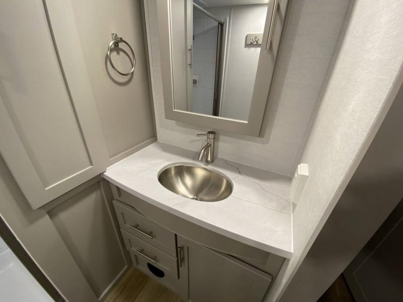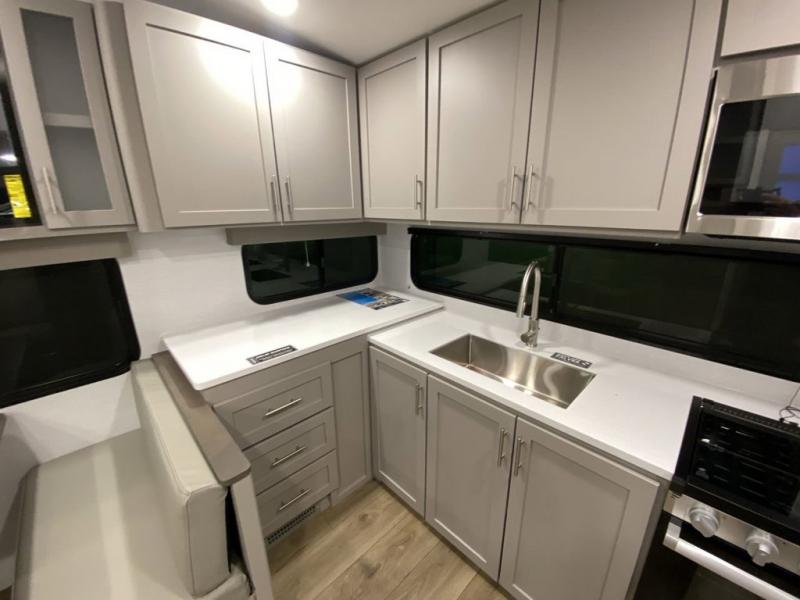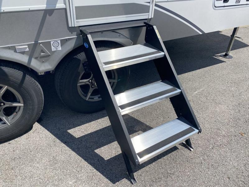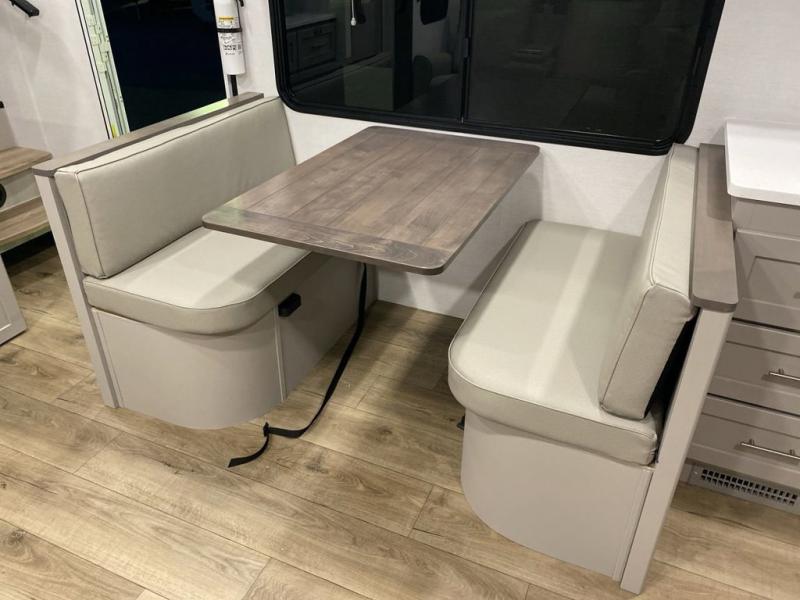 A benchmark chassis creates a space saver upper deck with each one of these Avenue All-Access fifth wheels by Alliance RV! The 101 in. wide-body construction gives you more room to walk around and the flush slide out floors throughout prevent any tripping. There are Azdel composite sidewalls inside and out, and a seamless fully walkable PVC roof for extreme durability and zero maintenance. You are sure to love no carpet throughout making each Avenue All-Access easy to clean and allergen free, not to mention pet friendly. You can maximize your space throughout with innovative storage solutions like the hidden storage behind the TV, inside the end tables, ottoman, and dinette chairs. These units also include the OTG Solar Package with a 200 watt solar panel, 15 amp MPPT charger, multiple outlets, and more to keep you powered up!
