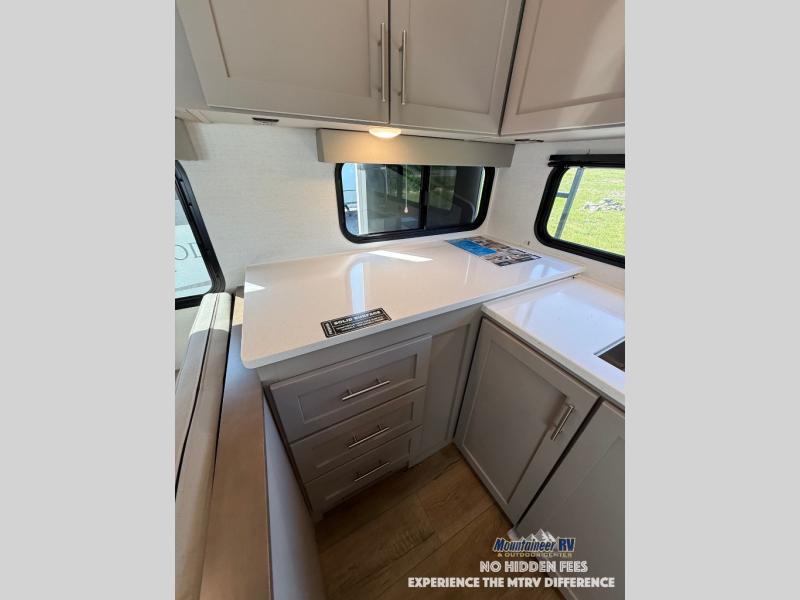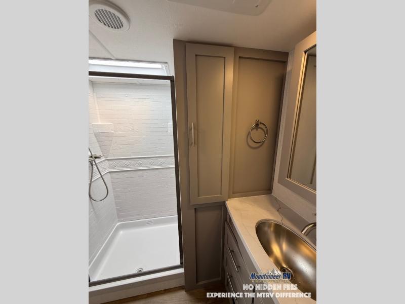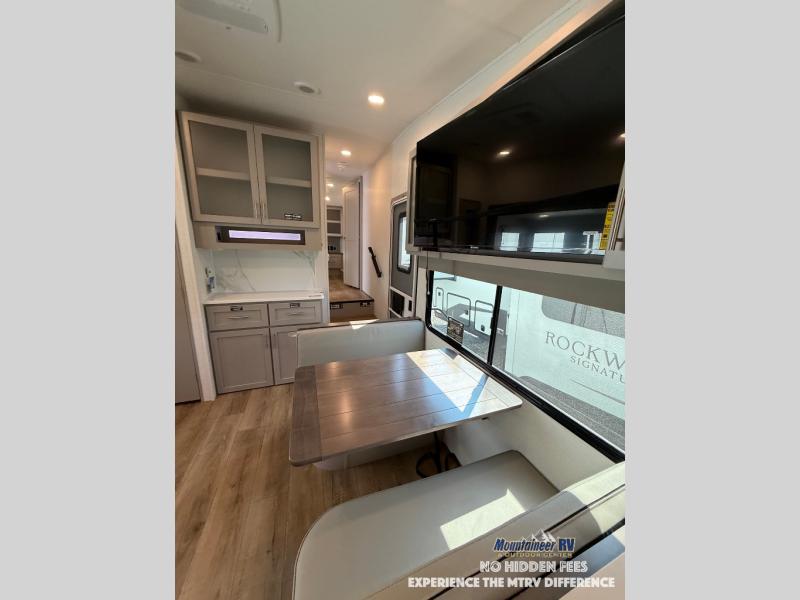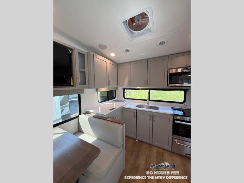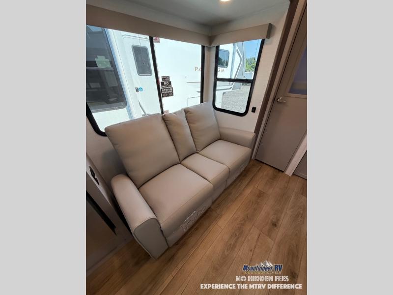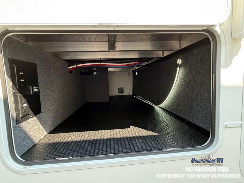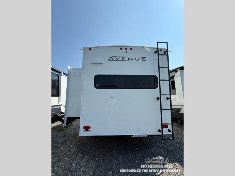 A benchmark chassis creates a space saver upper deck with each one of these Avenue All-Access fifth wheels by Alliance RV! The 101 in. wide-body construction gives you more room to walk around and the flush slide out floors throughout prevent any tripping. There are composite sidewalls inside and out, and PVC roof for extreme durability. You are sure to love no carpet throughout making each Avenue All-Access easy to clean and allergen free, not to mention pet friendly. You can maximize your space throughout with innovative storage solutions like the hidden storage behind the TV, inside the end tables, ottoman, and dinette chairs. These units also include the OTG Solar Package with a 200 watt solar panel, 15 amp MPPT charger, multiple outlets, and more to keep you powered up!