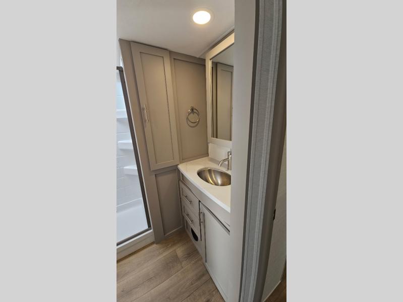 A benchmark chassis creates a space saver upper deck with each one of these Avenue All-Access fifth wheels by Alliance RV! The 101 in. wide-body construction gives you more room to walk around and the flush slide out floors throughout prevent any tripping. There are composite sidewalls inside and out, and PVC roof for extreme durability. You are sure to love no carpet throughout making each Avenue All-Access easy to clean and allergen free, not to mention pet friendly. You can maximize your space throughout with innovative storage solutions like the hidden storage behind the TV, inside the end tables, ottoman, and dinette chairs. These units also include the OTG Solar Package with a 200 watt solar panel, 15 amp MPPT charger, multiple outlets, and more to keep you powered up!