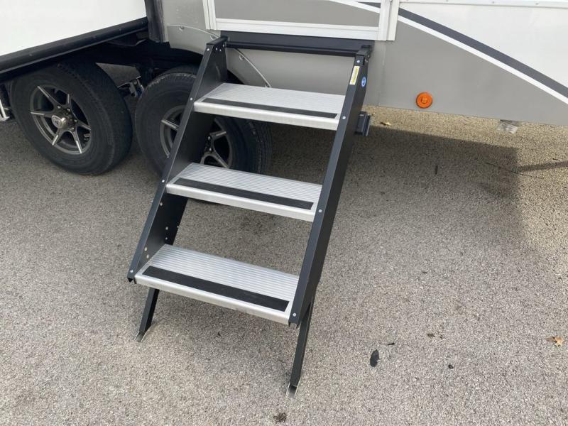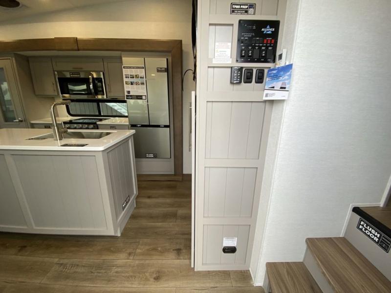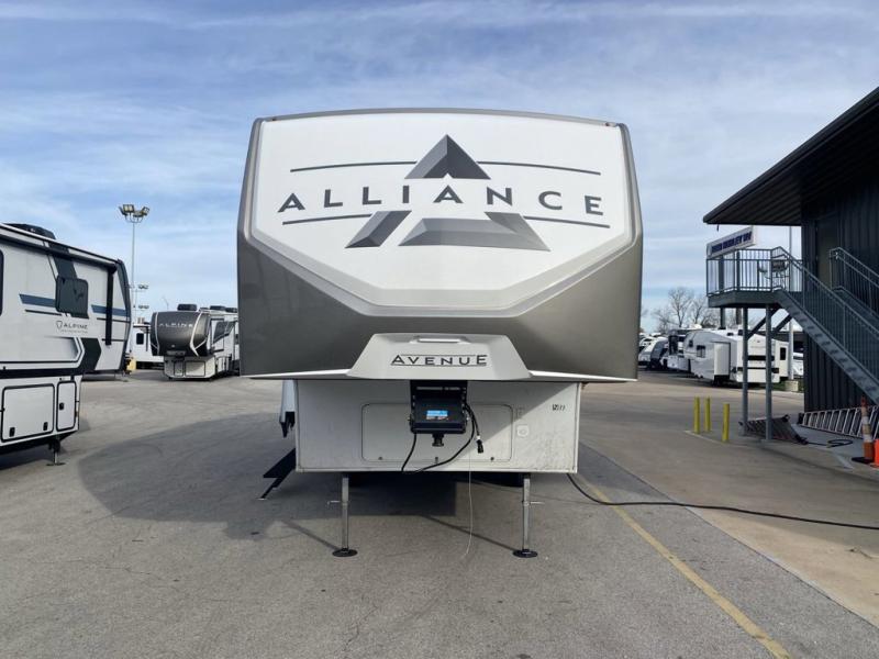 A benchmark chassis creates a space saver upper deck with each one of these Avenue All-Access fifth wheels by Alliance RV! The 101 in. wide-body construction gives you more room to walk around and the flush slide out floors throughout prevent any tripping. There are composite sidewalls inside and out, and PVC roof for extreme durability. You are sure to love no carpet throughout making each Avenue All-Access easy to clean and allergen free, not to mention pet friendly. You can maximize your space throughout with innovative storage solutions like the hidden storage behind the TV, inside the end tables, ottoman, and dinette chairs. These units also include the OTG Solar Package with a 200 watt solar panel, 15 amp MPPT charger, multiple outlets, and more to keep you powered up!