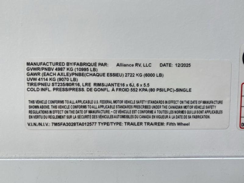 New 2026 Alliance RV Avenue 25RL Fifth Wheel
