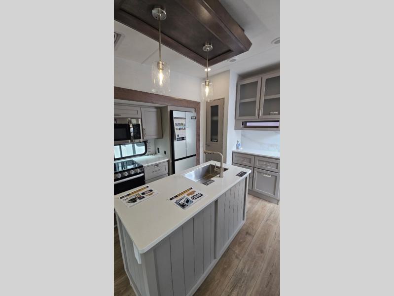A benchmark chassis creates a space saver upper deck with each one of these Avenue All-Access fifth wheels by Alliance RV! The 101 in. wide-body construction gives you more room to walk around and the flush slide out floors throughout prevent any tripping. There are composite sidewalls inside and out, and PVC roof for extreme durability. You are sure to love no carpet throughout making each Avenue All-Access easy to clean and allergen free, not to mention pet friendly. You can maximize your space throughout with innovative storage solutions like the hidden storage behind the TV, inside the end tables, ottoman, and dinette chairs. These units also include the OTG Solar Package with a 200 watt solar panel, 15 amp MPPT charger, multiple outlets, and more to keep you powered up!