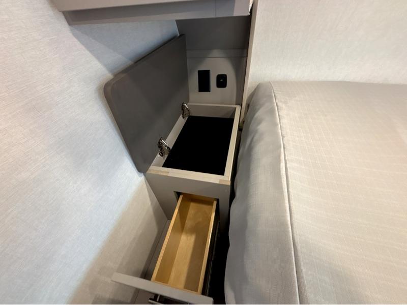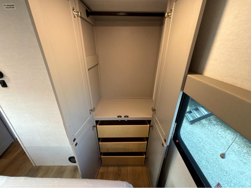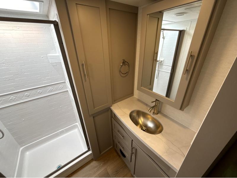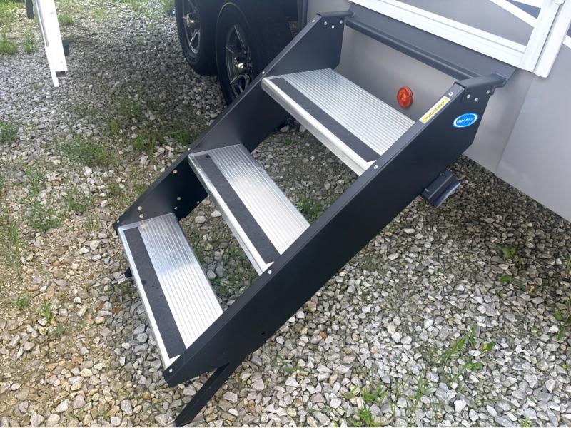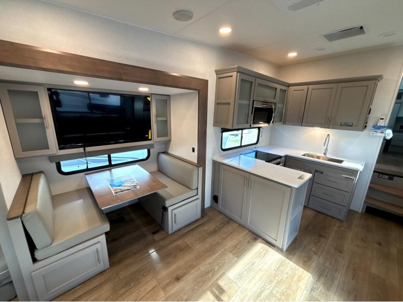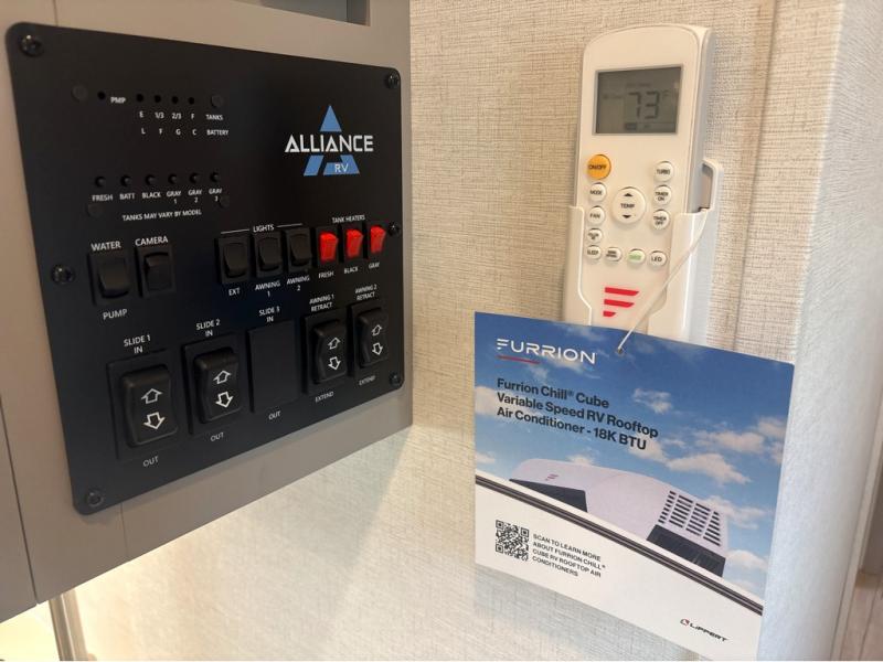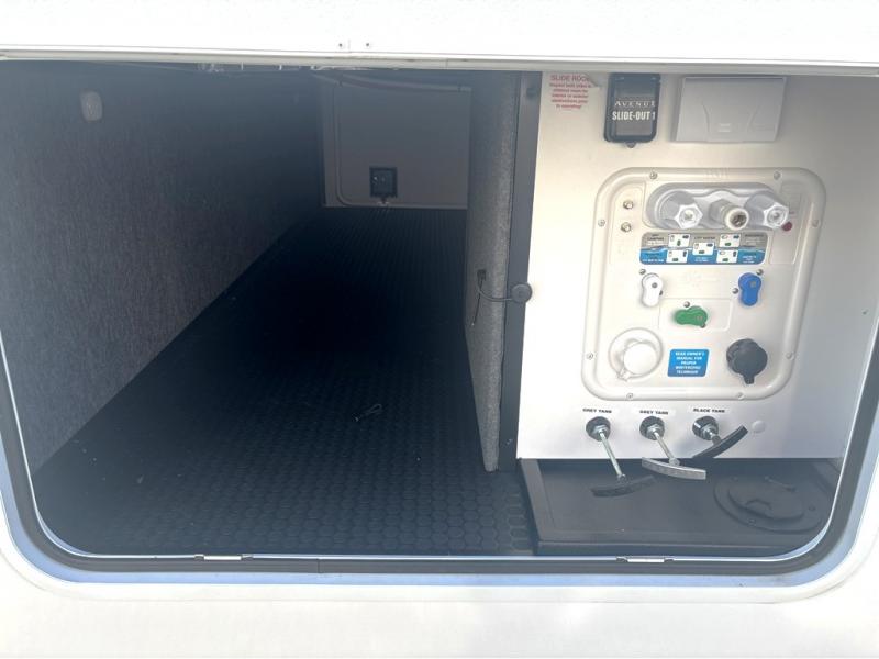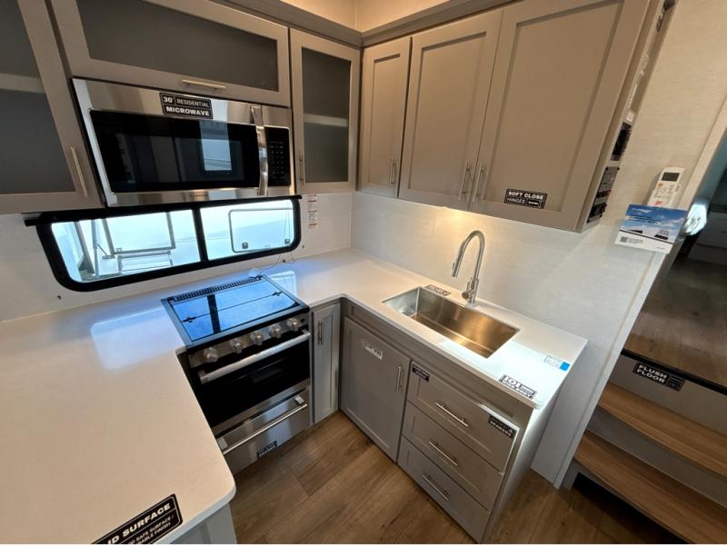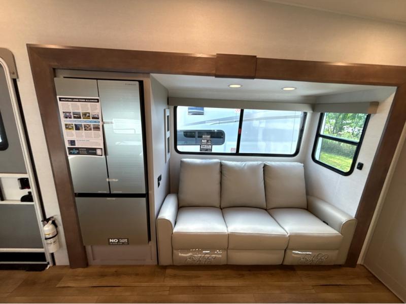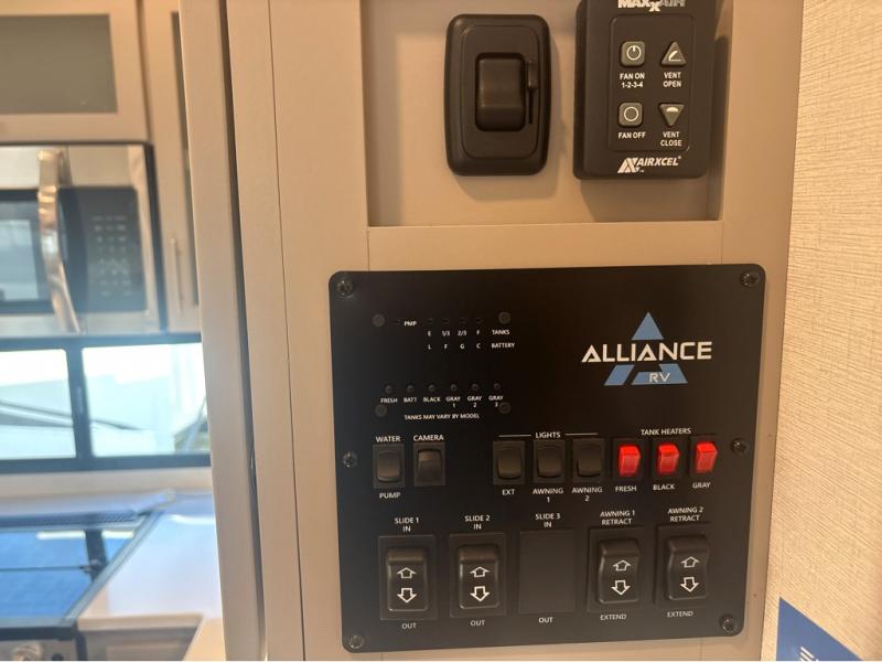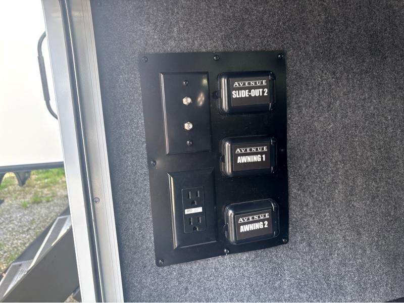 A benchmark chassis creates a space saver upper deck with each one of these Avenue All-Access fifth wheels by Alliance RV! The 101 in. wide-body construction gives you more room to walk around and the flush slide out floors throughout prevent any tripping. There are Azdel composite sidewalls inside and out, and a seamless fully walkable PVC roof for extreme durability and zero maintenance. You are sure to love no carpet throughout making each Avenue All-Access easy to clean and allergen free, not to mention pet friendly. You can maximize your space throughout with innovative storage solutions like the hidden storage behind the TV, inside the end tables, ottoman, and dinette chairs. These units also include the OTG Solar Package with a 200 watt solar panel, 15 amp MPPT charger, multiple outlets, and more to keep you powered up!