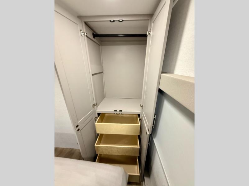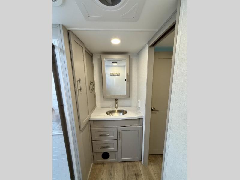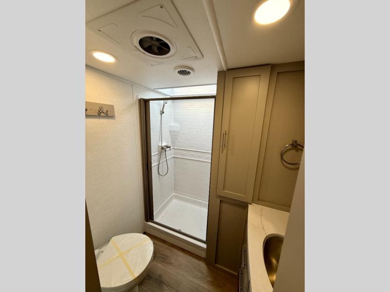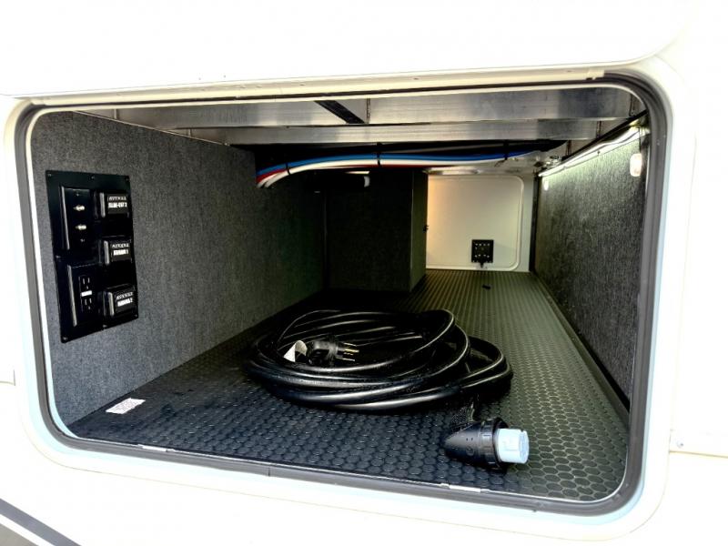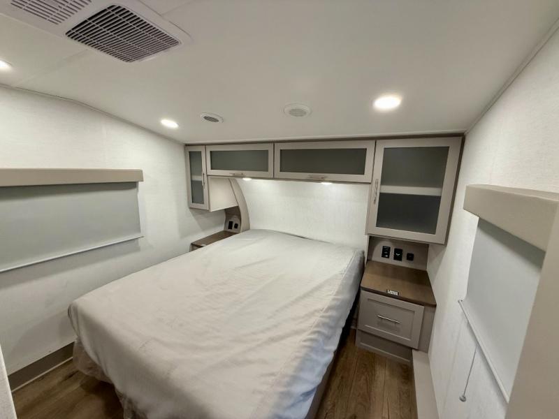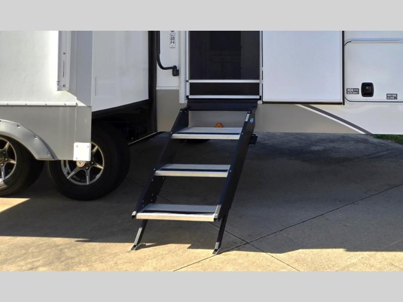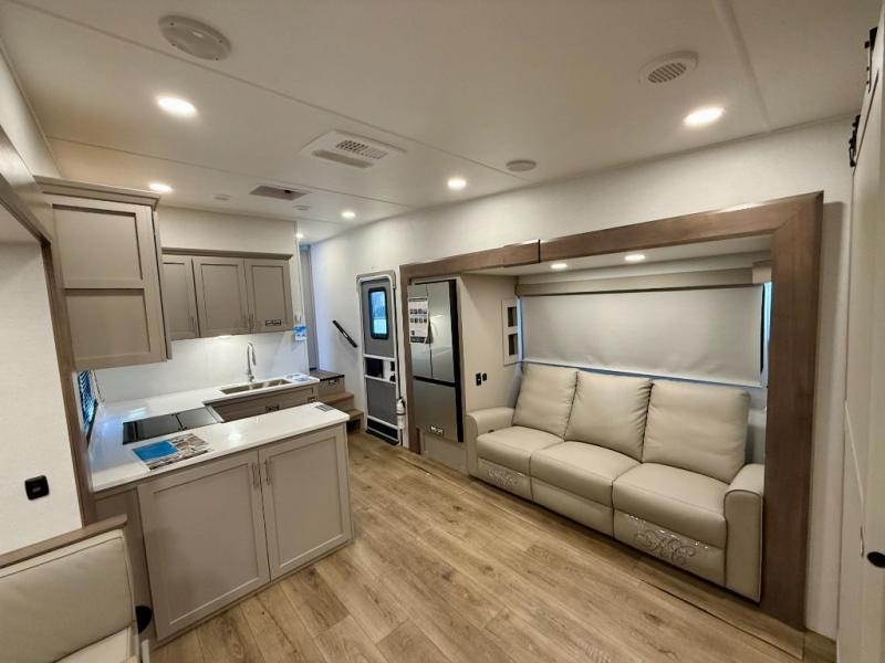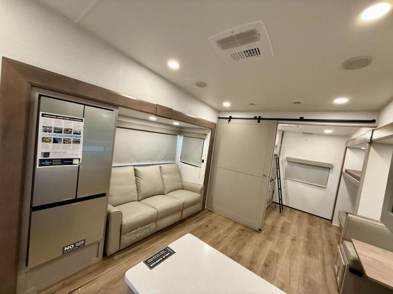 A benchmark chassis creates a space saver upper deck with each one of these Avenue All-Access fifth wheels by Alliance RV! The 101 in. wide-body construction gives you more room to walk around and the flush slide out floors throughout prevent any tripping. There are Azdel composite sidewalls inside and out, and a seamless fully walkable PVC roof for extreme durability and zero maintenance. You are sure to love no carpet throughout making each Avenue All-Access easy to clean and allergen free, not to mention pet friendly. You can maximize your space throughout with innovative storage solutions like the hidden storage behind the TV, inside the end tables, ottoman, and dinette chairs. These units also include the OTG Solar Package with a 200 watt solar panel, 15 amp MPPT charger, multiple outlets, and more to keep you powered up!