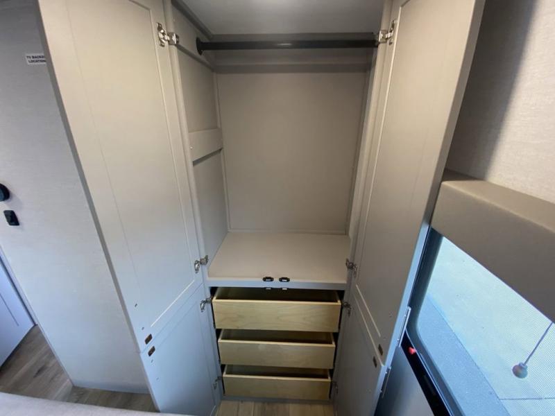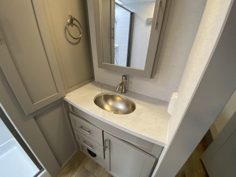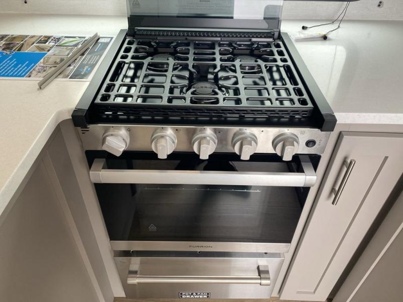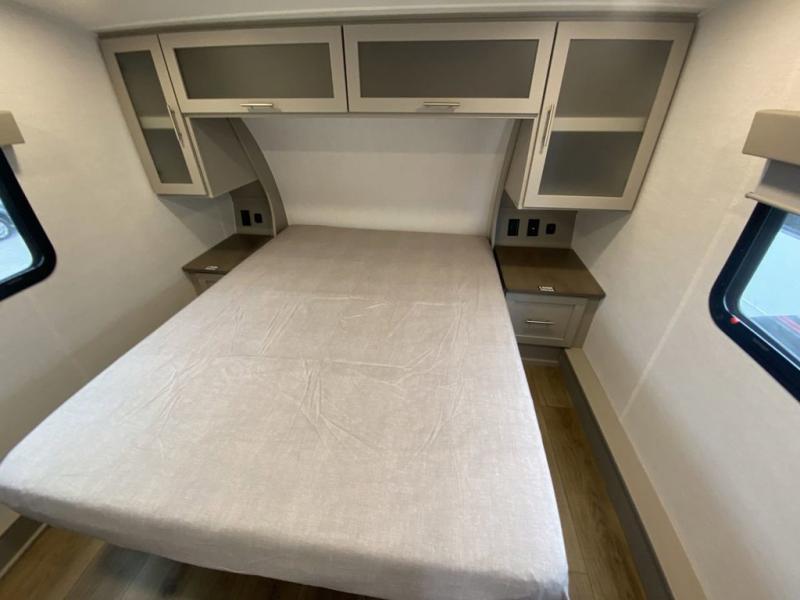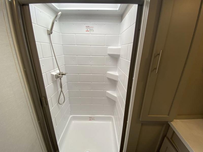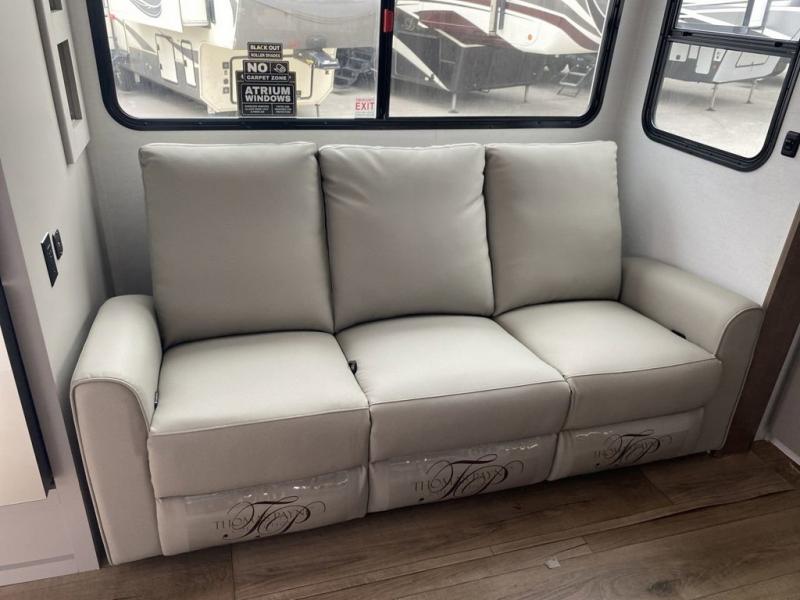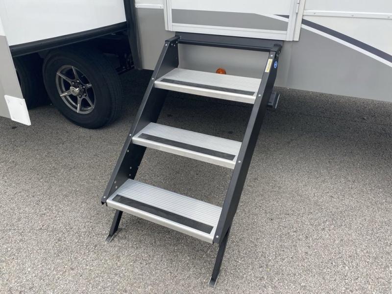 A benchmark chassis creates a space saver upper deck with each one of these Avenue All-Access fifth wheels by Alliance RV! The 101 in. wide-body construction gives you more room to walk around and the flush slide out floors throughout prevent any tripping. There are Azdel composite sidewalls inside and out, and a seamless fully walkable PVC roof for extreme durability and zero maintenance. You are sure to love no carpet throughout making each Avenue All-Access easy to clean and allergen free, not to mention pet friendly. You can maximize your space throughout with innovative storage solutions like the hidden storage behind the TV, inside the end tables, ottoman, and dinette chairs. These units also include the OTG Solar Package with a 200 watt solar panel, 15 amp MPPT charger, multiple outlets, and more to keep you powered up!