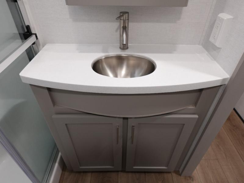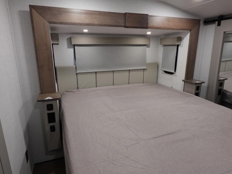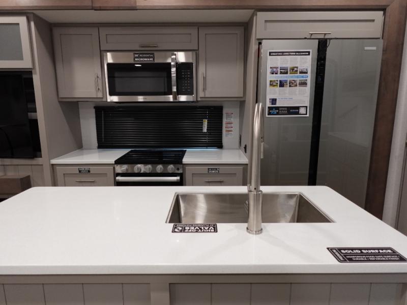 With any Avenue fifth wheel or travel trailer by Alliance RV, you will enjoy more interior space provided by the 8' 5" wide-body construction, and a long list of luxury features. Each is built with Azdel composite sidewalls both inside and out, along with a PVC roof for added strength. There are innovative storage solutions that include hidden storage behind the TV, within end tables and ottomans, and more. Since these units feature no carpet throughout, cleaning will be easier than ever, and there are flush floor slides throughout for seamless living spaces. The Avenue also comes with the OTG Solar Package with a 400 watt solar panel, inverter prep, multiple outlets, and more to keep you charged up!