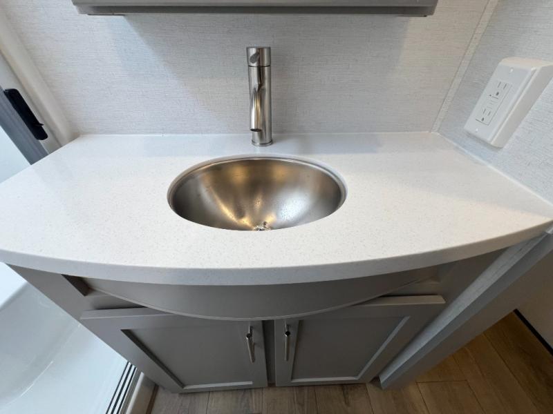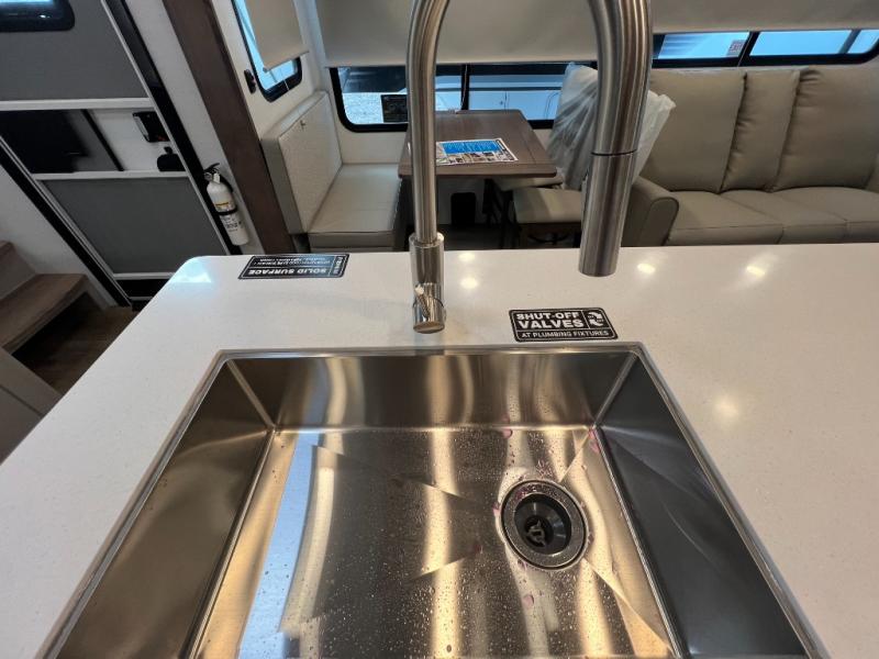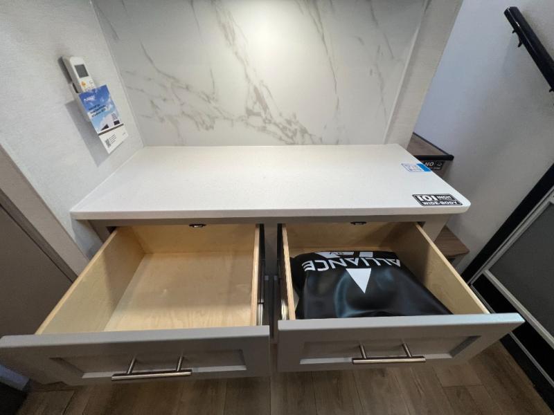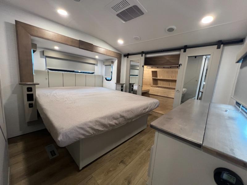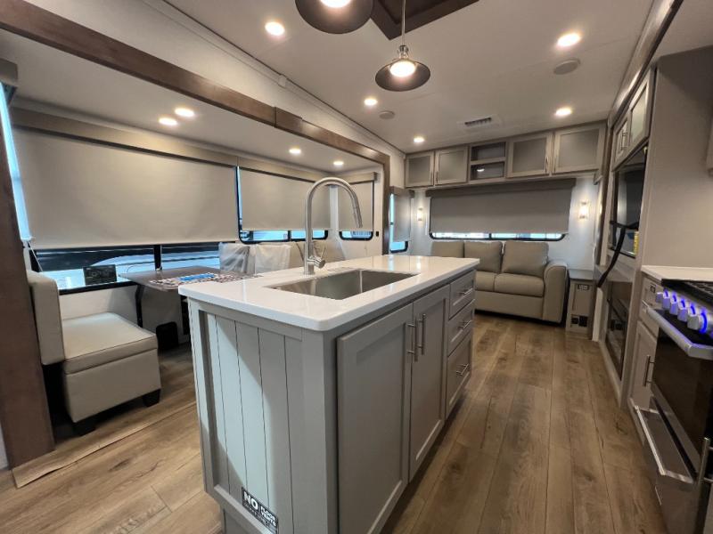 With any Avenue fifth wheel or travel trailer by Alliance RV, you will enjoy more interior space provided by the 8' 5" wide-body construction, and a long list of luxury features. Each is built with Azdel composite sidewalls both inside and out, along with a PVC roof for added strength. There are innovative storage solutions that include hidden storage behind the TV, within end tables and ottomans, and more. Since these units feature no carpet throughout, cleaning will be easier than ever, and there are flush floor slides throughout for seamless living spaces. The Avenue also comes with the OTG Solar Package with a 400 watt solar panel, inverter prep, multiple outlets, and more to keep you charged up!