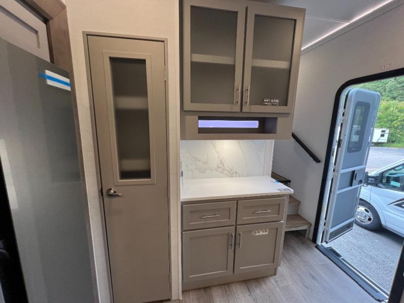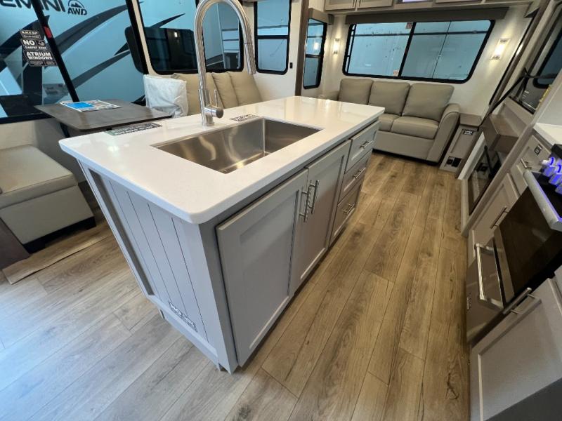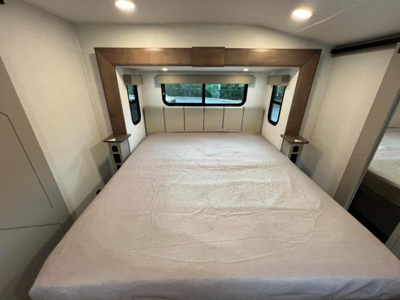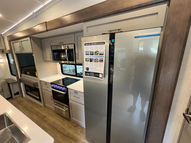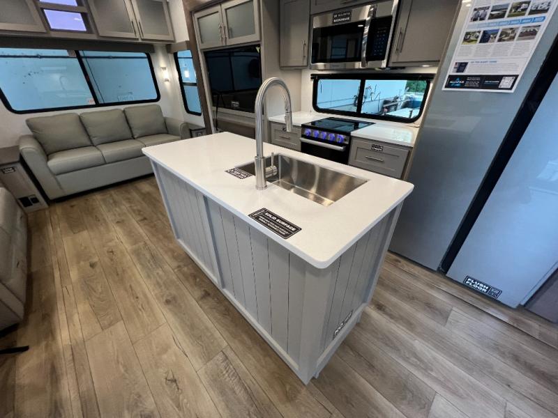 With any Avenue fifth wheel or travel trailer by Alliance RV, you will enjoy more interior space provided by the 8' 5" wide-body construction, and a long list of luxury features. Each is built with Azdel composite sidewalls both inside and out, along with a PVC roof for added strength. There are innovative storage solutions that include hidden storage behind the TV, within end tables and ottomans, and more. Since these units feature no carpet throughout, cleaning will be easier than ever, and there are flush floor slides throughout for seamless living spaces. The Avenue also comes with the OTG Solar Package with a 400 watt solar panel, inverter prep, multiple outlets, and more to keep you charged up!