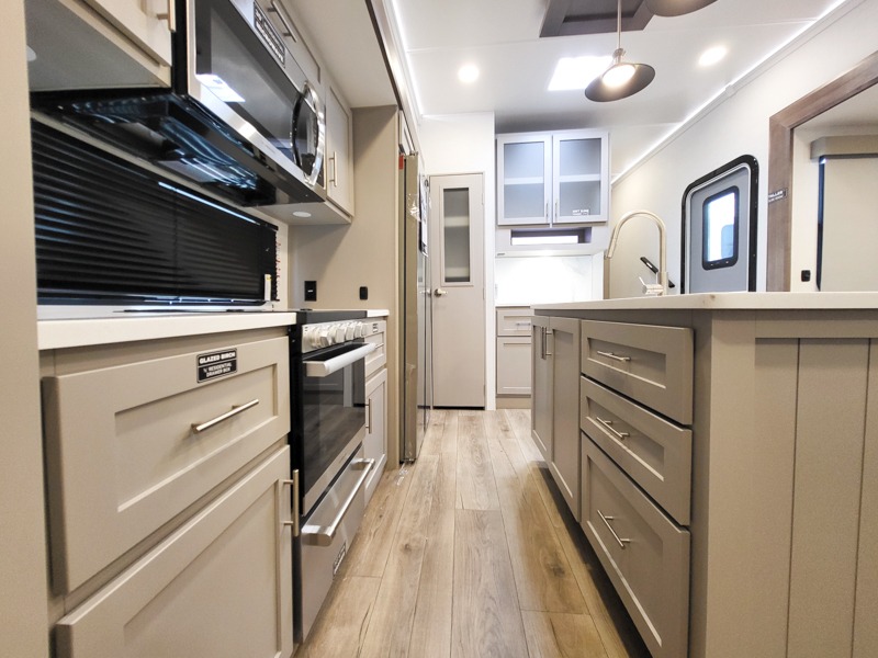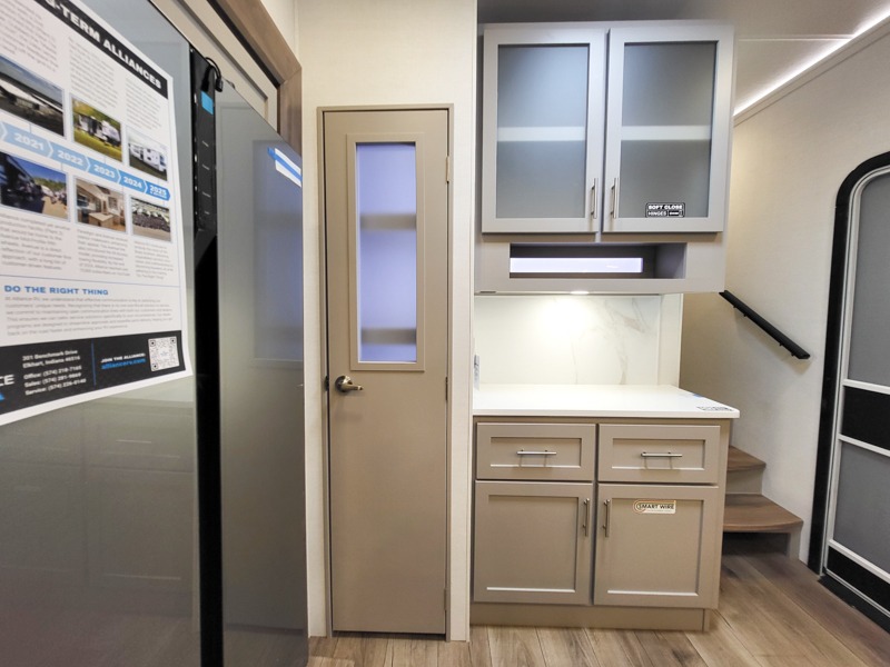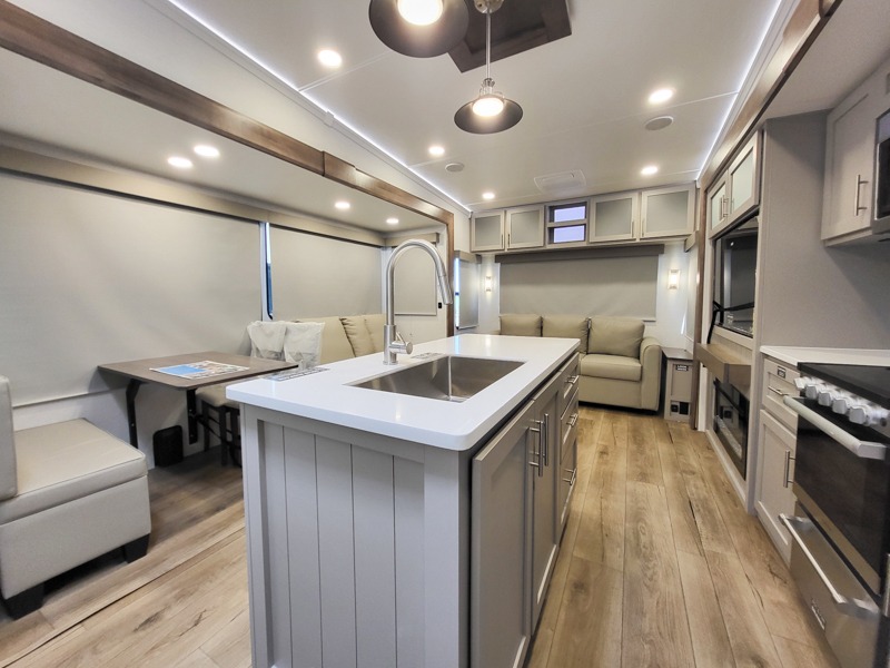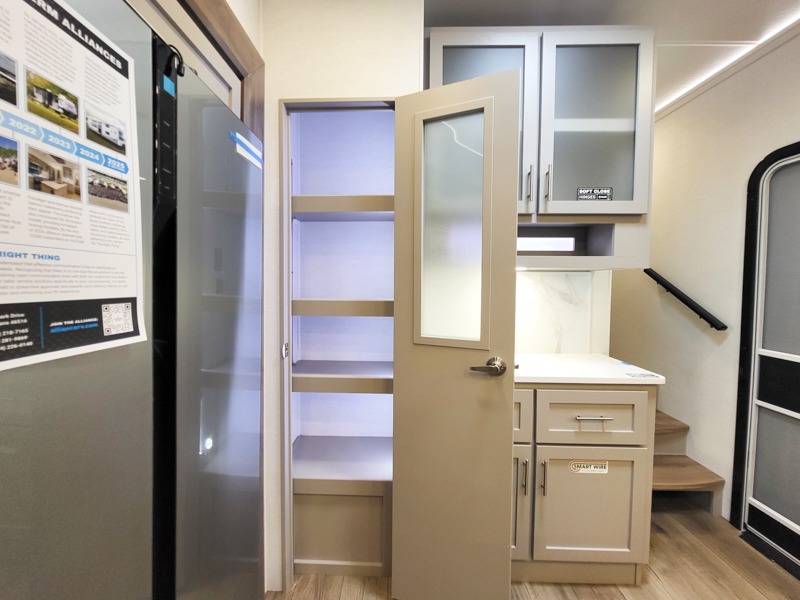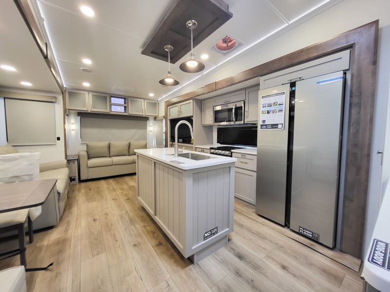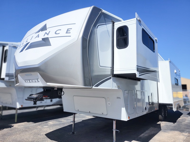 With any Avenue fifth wheel or travel trailer by Alliance RV, you will enjoy more interior space provided by the 8' 5" wide-body construction, and a long list of luxury features. Each is built with Azdel composite sidewalls both inside and out, along with a PVC roof for added strength. There are innovative storage solutions that include hidden storage behind the TV, within end tables and ottomans, and more. Since these units feature no carpet throughout, cleaning will be easier than ever, and there are flush floor slides throughout for seamless living spaces. The Avenue also comes with the OTG Solar Package with a 400 watt solar panel, inverter prep, multiple outlets, and more to keep you charged up!
