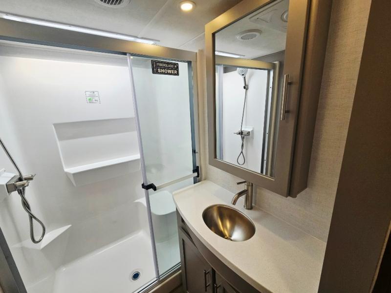 With any Avenue fifth wheel or travel trailer by Alliance RV, you will enjoy more interior space provided by the 8' 5" wide-body construction, and a long list of luxury features. Each is built with Azdel composite sidewalls both inside and out, along with a PVC roof for added strength. There are innovative storage solutions that include hidden storage behind the TV, within end tables and ottomans, and more. Since these units feature no carpet throughout, cleaning will be easier than ever, and there are flush floor slides throughout for seamless living spaces. The Avenue also comes with the OTG Solar Package with a 400 watt solar panel, inverter prep, multiple outlets, and more to keep you charged up!