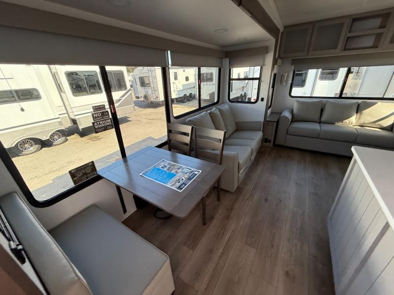 With any Avenue fifth wheel or travel trailer by Alliance RV, you will enjoy more interior space provided by the 8' 5" wide-body construction, and a long list of luxury features. Each is built with Azdel composite sidewalls both inside and out, along with a PVC roof for added strength. There are innovative storage solutions that include hidden storage behind the TV, within end tables and ottomans, and more. Since these units feature no carpet throughout, cleaning will be easier than ever, and there are flush floor slides throughout for seamless living spaces. The Avenue also comes with the OTG Solar Package with a 400 watt solar panel, inverter prep, multiple outlets, and more to keep you charged up!