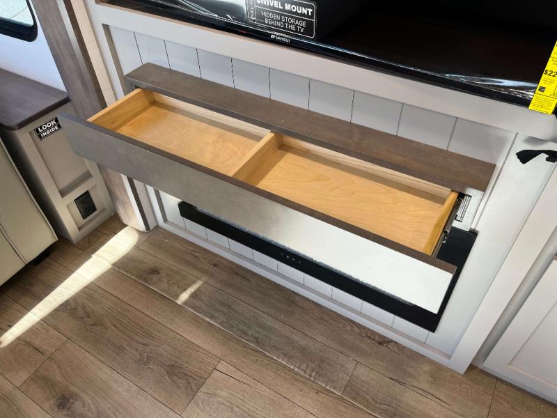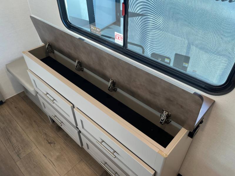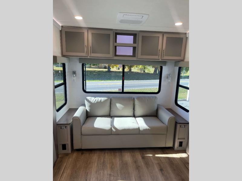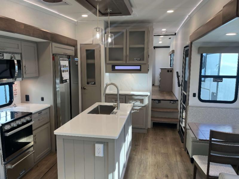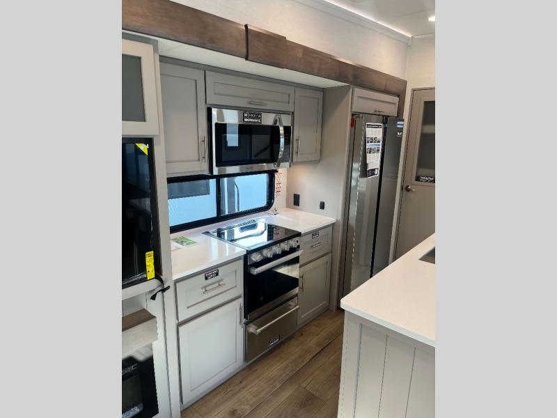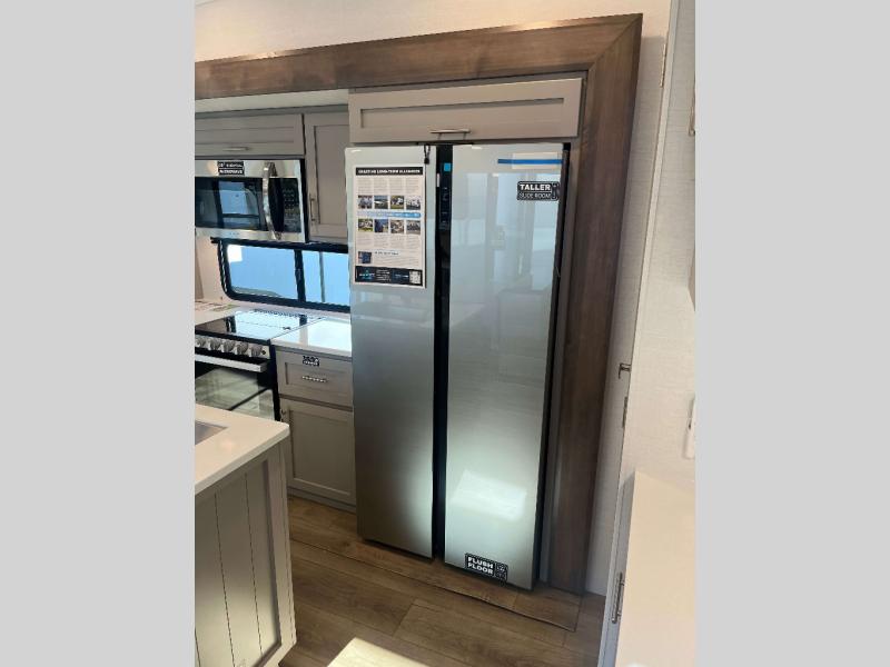 2 A/C's, 35K BTU Furnace, Fireplace, Walkable Roof w/ Seamless PVC Covering, Flush Floor Kitchen Slide, 30"" Over The Range Microwave, Large Residential Shower, Solid Surface Counter Tops, Commercial Grade Vinyl Flooring (No Carpet), Residential Cabinet Doors w/ Magnetic Catch,Soft Close Hidden Hinges, Porcelain Toilet w/ Foot Flush, Roller Shades Throughout, 50"" TV w/ Swing Arm in Living, Residential LED Ceiling Lights w/ Dimmer Switch, Hardwood Cabinet Doors and Drawers, Nickel Cabinetry Hardware, No InFloor Heat Vents (Main Floor), Mylar Reinforced Exterior Seals, Tri-Fold Sofa, Theater Seating, Double Insulated Laminated Rear Wall, Painted Fiberglass Front Cap, LP Quick Connect, Solid Quad Entry Steps PERFORMANCE RUNNING GEAR Good Year Tires, 3.5k Springs, Aluminum Rims w/ Spare Tire and Carrier, 101"" Wide-Body Benchmark Chassis Platform w/ Flush Floor Upper Deck, Mor-Ryde CRE3000 Suspension System, 4-Point Electric Leveling, 2"" Rear Receiver Hitch READY CONNECT Color Coded and Numbered Wiring, Shut off Valves at Major Plumbing Locations, Slide Topper Prep, Washer/Dryer Prep, Backup Camera Prep, Lithium Battery Ready, Starlink Prep, Satellite Prep, 50 AMP Power w/ Detachable Cord, Safety First Package (Smoke Detector/LP Alarm/Carbon Monoxide Alarm), Bluetooth Speakers and App Controls, Powder Coated Heavy Duty Rear Ladder, Universal All-In-One Docking Station OTG Package 400 W Solar Panel, 30 AMP MPPT Charge Controller