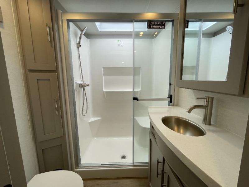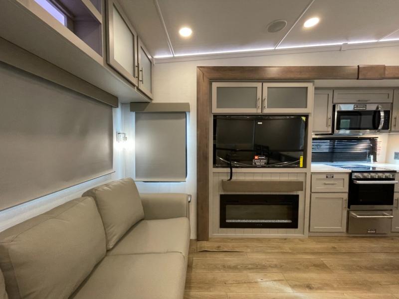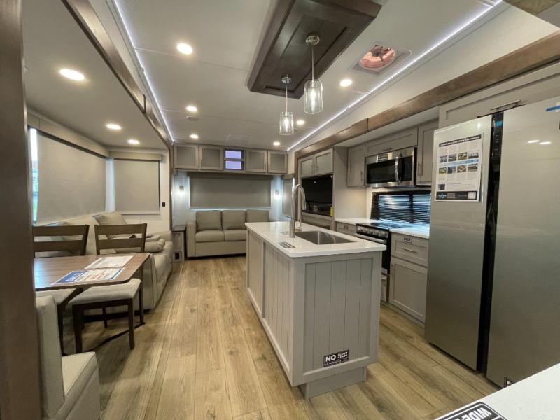 With any Avenue fifth wheel or travel trailer by Alliance RV, you will enjoy more interior space provided by the 8' 5" wide-body construction, and a long list of luxury features. Each is built with Azdel composite sidewalls both inside and out, along with a PVC roof for added strength. There are innovative storage solutions that include hidden storage behind the TV, within end tables and ottomans, and more. Since these units feature no carpet throughout, cleaning will be easier than ever, and there are flush floor slides throughout for seamless living spaces. The Avenue also comes with the OTG Solar Package with a 400 watt solar panel, inverter prep, multiple outlets, and more to keep you charged up!