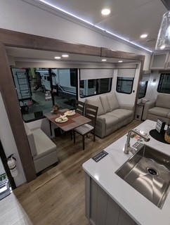 With any Avenue fifth wheel or travel trailer by Alliance RV, you will enjoy more interior space provided by the 8' 5" wide-body construction, and a long list of luxury features. Each is built with Azdel composite sidewalls both inside and out, along with a PVC roof for added strength. There are innovative storage solutions that include hidden storage behind the TV, within end tables and ottomans, and more. Since these units feature no carpet throughout, cleaning will be easier than ever, and there are flush floor slides throughout for seamless living spaces. The Avenue also comes with the OTG Solar Package with a 400 watt solar panel, inverter prep, multiple outlets, and more to keep you charged up!