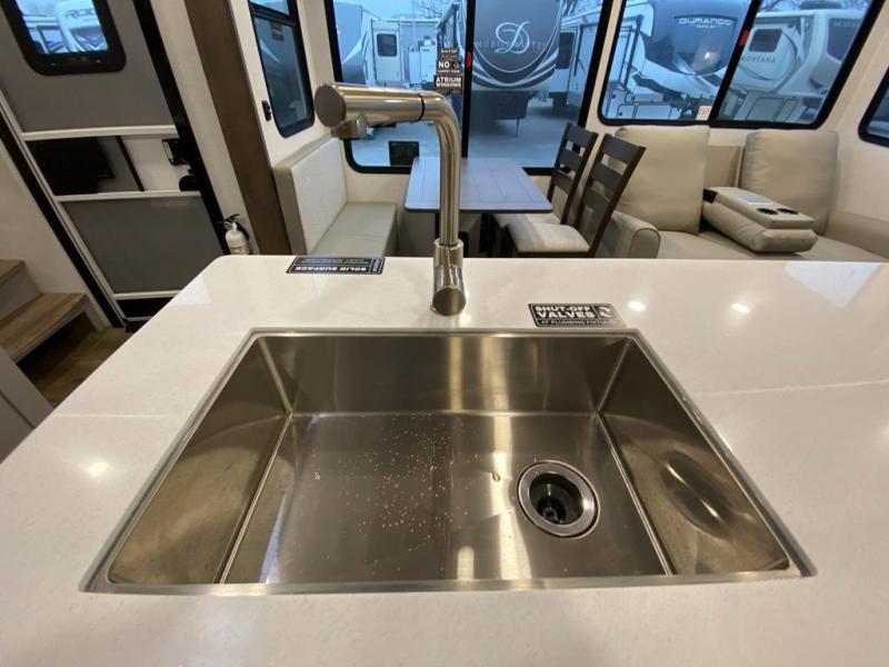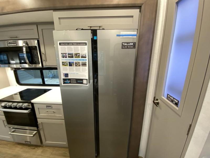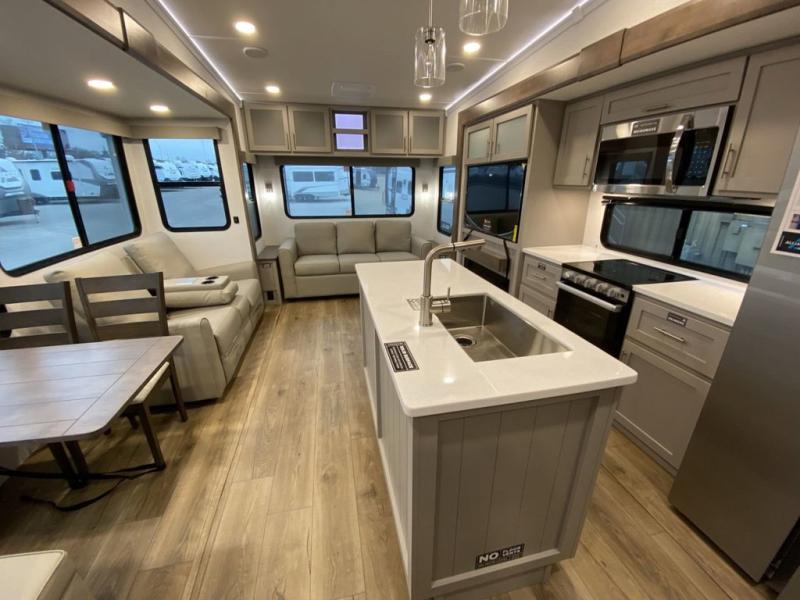 With any Avenue fifth wheel or travel trailer by Alliance RV, you will enjoy more interior space provided by the 8' 5" wide-body construction, and a long list of luxury features. Each is built with Azdel composite sidewalls both inside and out, along with a PVC roof for added strength. There are innovative storage solutions that include hidden storage behind the TV, within end tables and ottomans, and more. Since these units feature no carpet throughout, cleaning will be easier than ever, and there are flush floor slides throughout for seamless living spaces. The Avenue also comes with the OTG Solar Package with a 400 watt solar panel, inverter prep, multiple outlets, and more to keep you charged up!