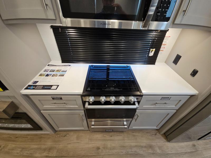 With any Avenue fifth wheel or travel trailer by Alliance RV, you will enjoy more interior space provided by the 8' 5" wide-body construction, and a long list of luxury features. Each is built with Azdel composite sidewalls both inside and out, along with a PVC roof for added strength. There are innovative storage solutions that include hidden storage behind the TV, within end tables and ottomans, and more. Since these units feature no carpet throughout, cleaning will be easier than ever, and there are flush floor slides throughout for seamless living spaces. The Avenue also comes with the OTG Solar Package with a 400 watt solar panel, inverter prep, multiple outlets, and more to keep you charged up!