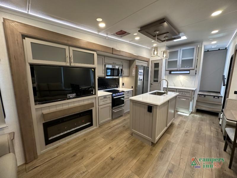 ADVENTURE AWAITS IN THIS LUXURY 5TH WHEEL CALL CLICK OR COME BY C; Premium Package; MPERS INN OF KINGSTON, NH TODAY; King Bed; 16 Cubic 12 V Refrigerator; Winterization