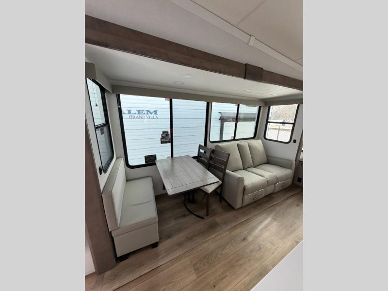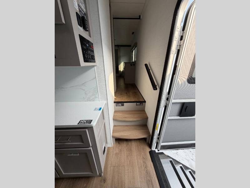 With any Avenue fifth wheel or travel trailer by Alliance RV, you will enjoy more interior space provided by the 8' 5" wide-body construction, and a long list of luxury features. Each is built with Azdel composite sidewalls both inside and out, along with a PVC roof for added strength. There are innovative storage solutions that include hidden storage behind the TV, within end tables and ottomans, and more. Since these units feature no carpet throughout, cleaning will be easier than ever, and there are flush floor slides throughout for seamless living spaces. The Avenue also comes with the OTG Solar Package with a 400 watt solar panel, inverter prep, multiple outlets, and more to keep you charged up!