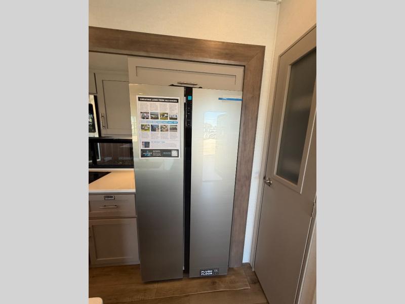 With any Avenue fifth wheel or travel trailer by Alliance RV, you will enjoy more interior space provided by the 8' 5" wide-body construction, and a long list of luxury features. Each is built with Azdel composite sidewalls both inside and out, along with a PVC roof for added strength. There are innovative storage solutions that include hidden storage behind the TV, within end tables and ottomans, and more. Since these units feature no carpet throughout, cleaning will be easier than ever, and there are flush floor slides throughout for seamless living spaces. The Avenue also comes with the OTG Solar Package with a 400 watt solar panel, inverter prep, multiple outlets, and more to keep you charged up!