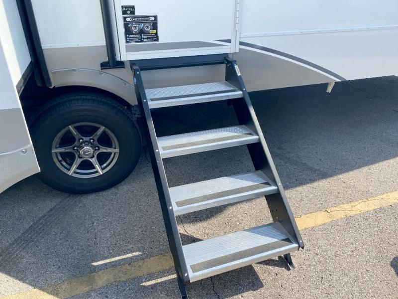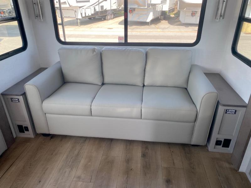 With any Avenue fifth wheel or travel trailer by Alliance RV, you will enjoy more interior space provided by the 8' 5" wide-body construction, and a long list of luxury features. Each is built with Azdel composite sidewalls both inside and out, along with a PVC roof for added strength. There are innovative storage solutions that include hidden storage behind the TV, within end tables and ottomans, and more. Since these units feature no carpet throughout, cleaning will be easier than ever, and there are flush floor slides throughout for seamless living spaces. The Avenue also comes with the OTG Solar Package with a 400 watt solar panel, inverter prep, multiple outlets, and more to keep you charged up!