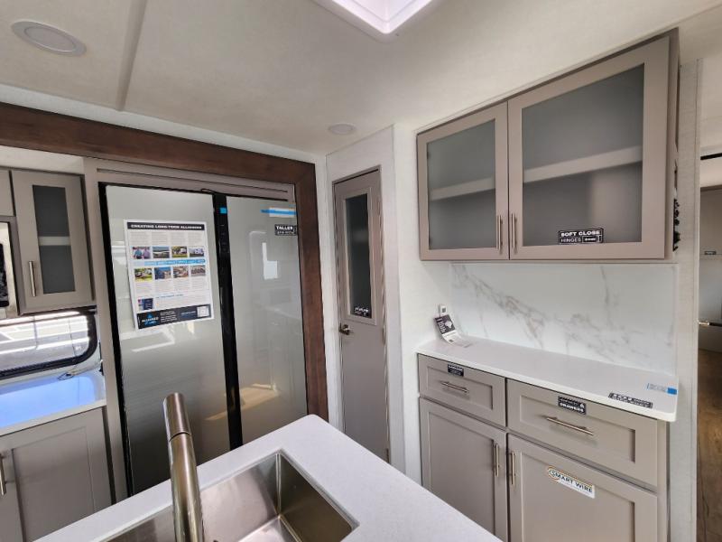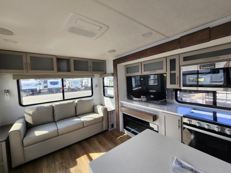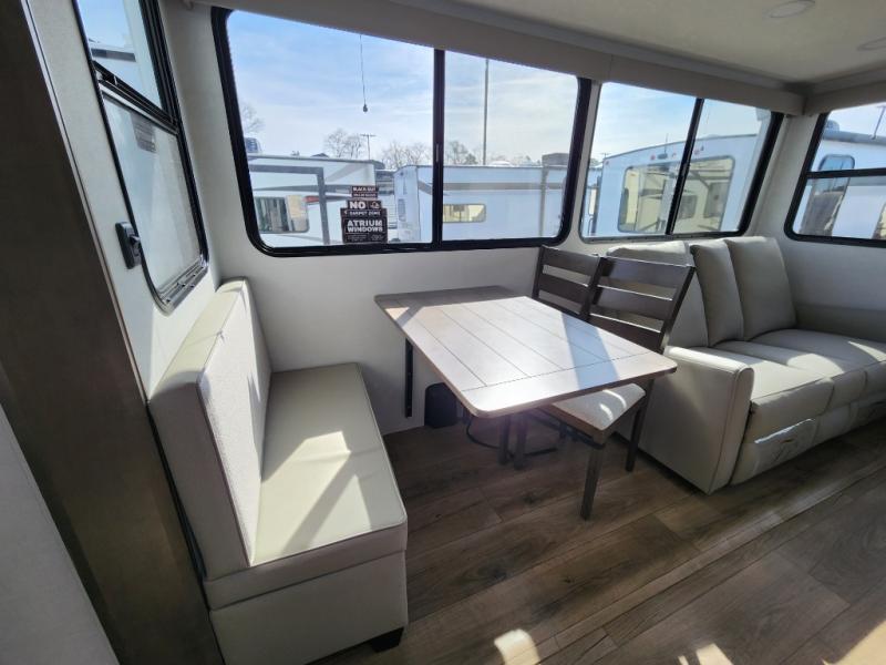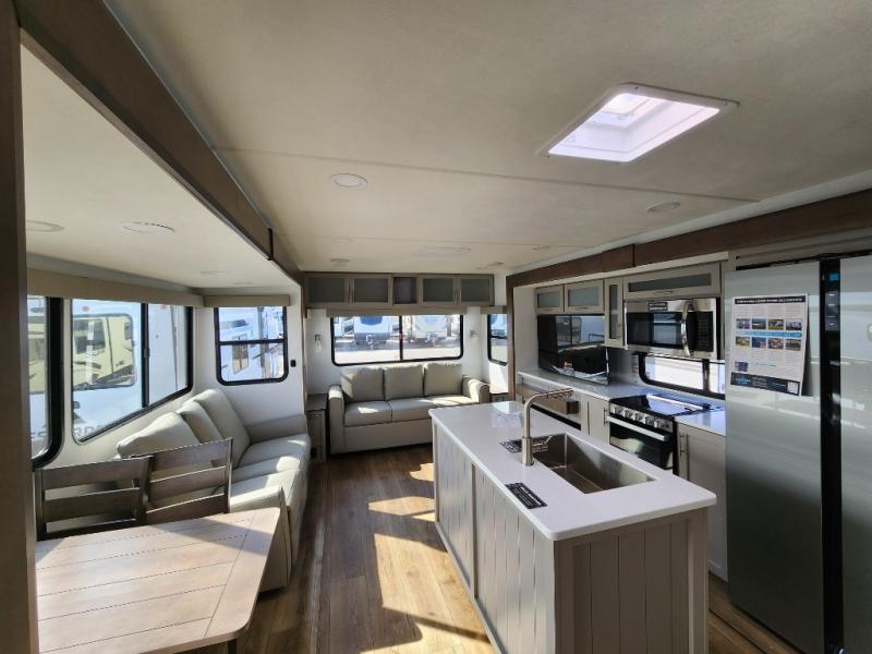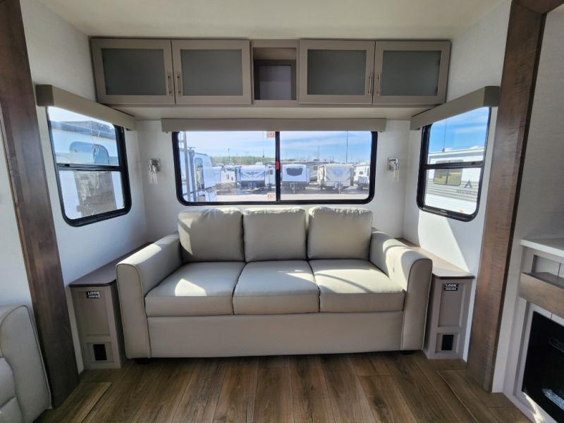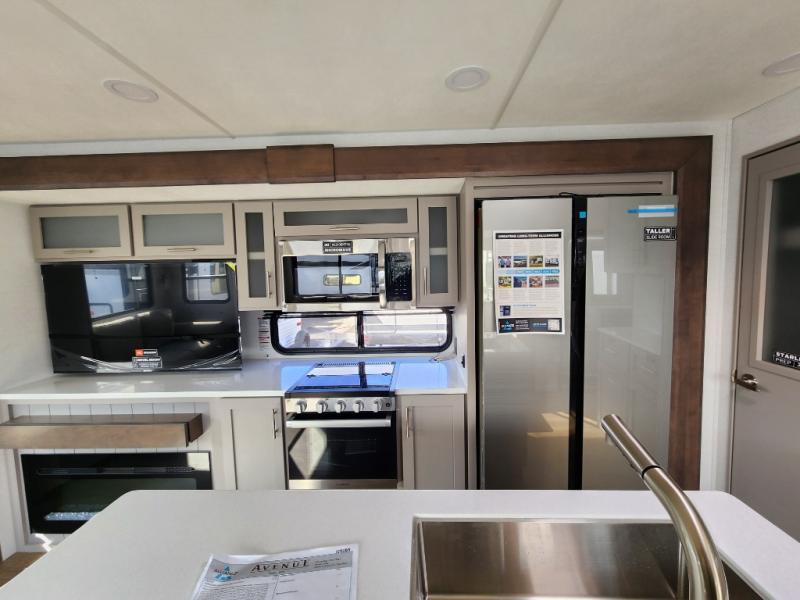 With any Avenue fifth wheel or travel trailer by Alliance RV, you will enjoy more interior space provided by the 8' 5" wide-body construction, and a long list of luxury features. Each is built with Azdel composite sidewalls both inside and out, along with a PVC roof for added strength. There are innovative storage solutions that include hidden storage behind the TV, within end tables and ottomans, and more. Since these units feature no carpet throughout, cleaning will be easier than ever, and there are flush floor slides throughout for seamless living spaces. The Avenue also comes with the OTG Solar Package with a 400 watt solar panel, inverter prep, multiple outlets, and more to keep you charged up!