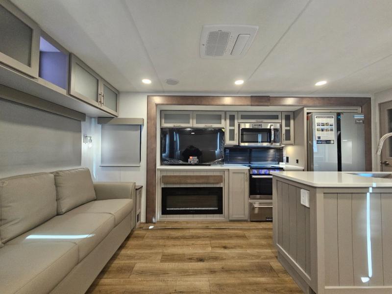 With any Avenue fifth wheel or travel trailer by Alliance RV, you will enjoy more interior space provided by the 8' 5" wide-body construction, and a long list of luxury features. Each is built with Azdel composite sidewalls both inside and out, along with a PVC roof for added strength. There are innovative storage solutions that include hidden storage behind the TV, within end tables and ottomans, and more. Since these units feature no carpet throughout, cleaning will be easier than ever, and there are flush floor slides throughout for seamless living spaces. The Avenue also comes with the OTG Solar Package with a 400 watt solar panel, inverter prep, multiple outlets, and more to keep you charged up!