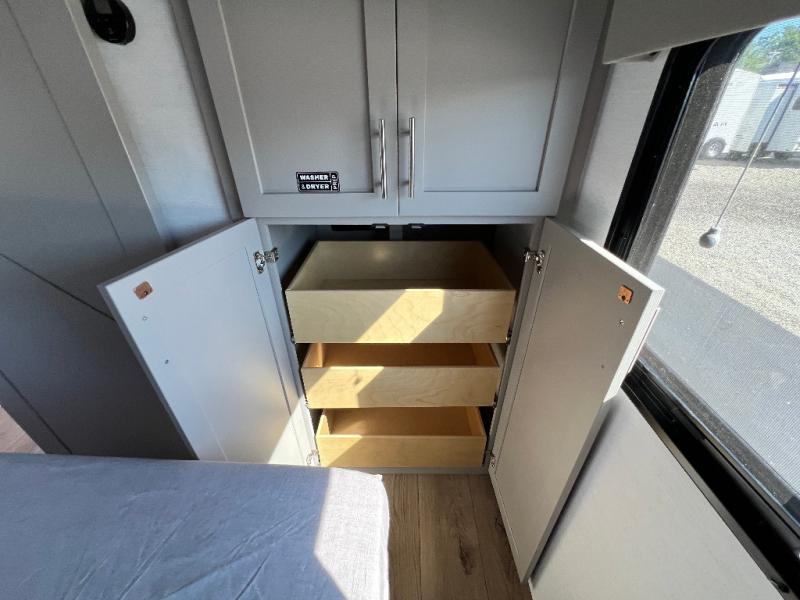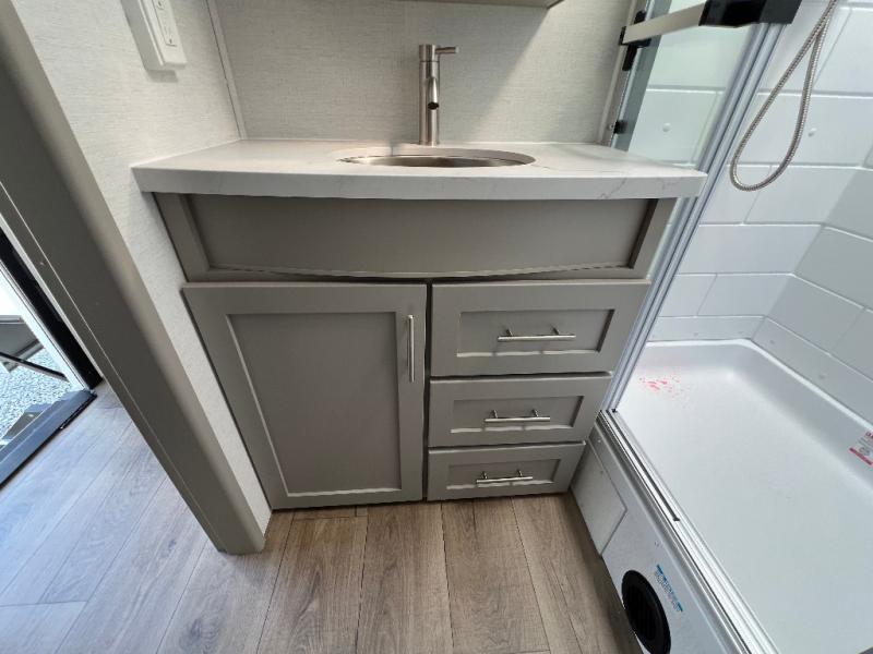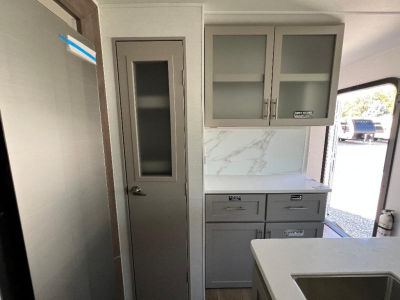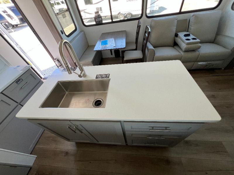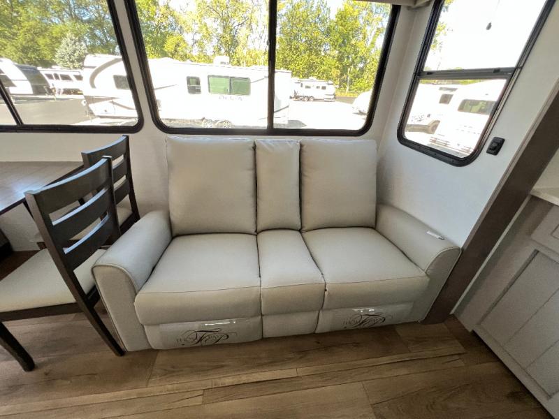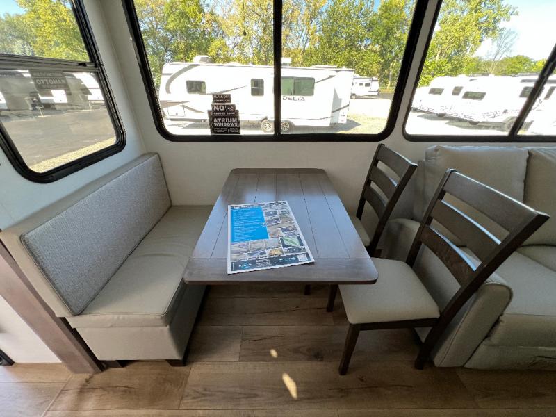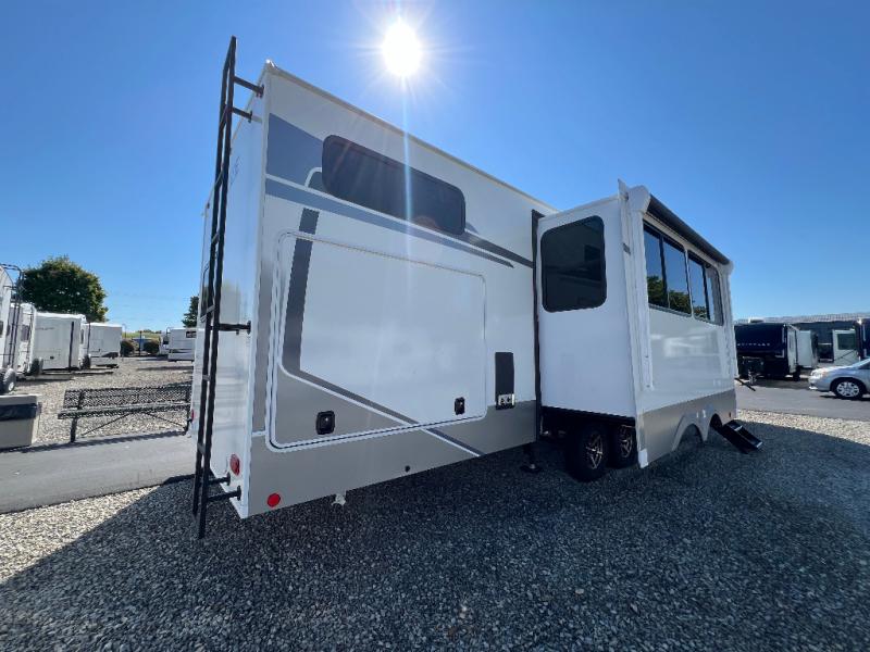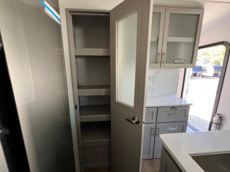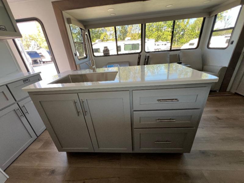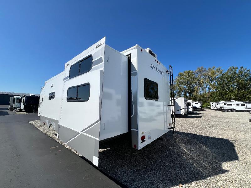 With any Avenue fifth wheel or travel trailer by Alliance RV, you will enjoy more interior space provided by the 8' 5" wide-body construction, and a long list of luxury features. Each is built with Azdel composite sidewalls both inside and out, along with a PVC roof for added strength. There are innovative storage solutions that include hidden storage behind the TV, within end tables and ottomans, and more. Since these units feature no carpet throughout, cleaning will be easier than ever, and there are flush floor slides throughout for seamless living spaces. The Avenue also comes with the OTG Solar Package with a 400 watt solar panel, inverter prep, multiple outlets, and more to keep you charged up!