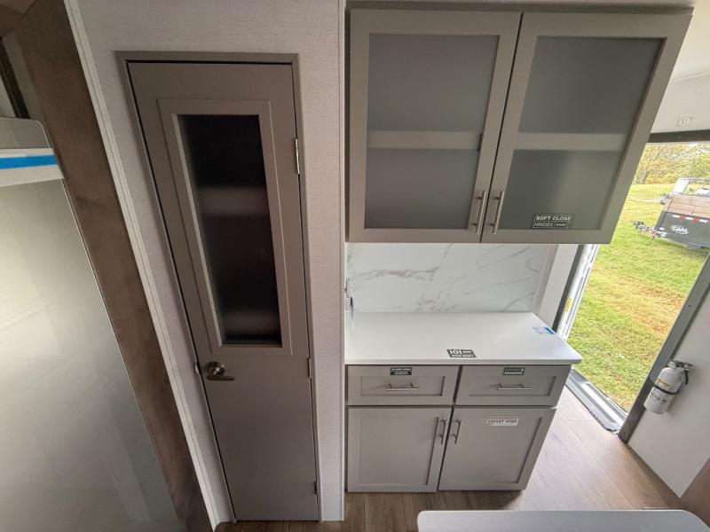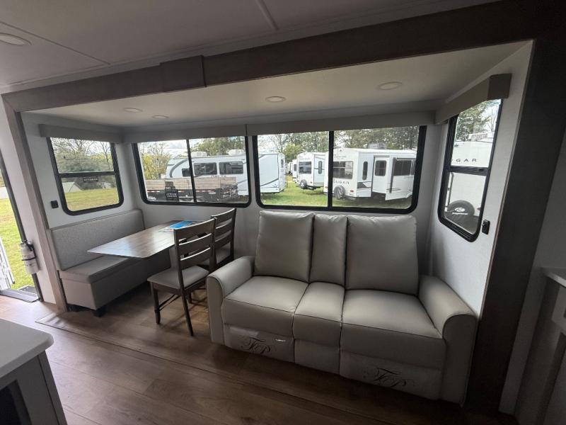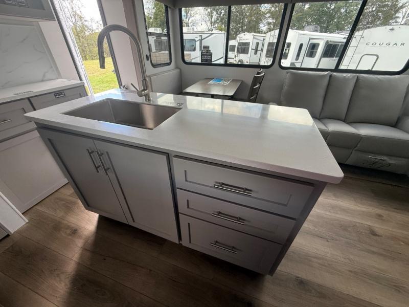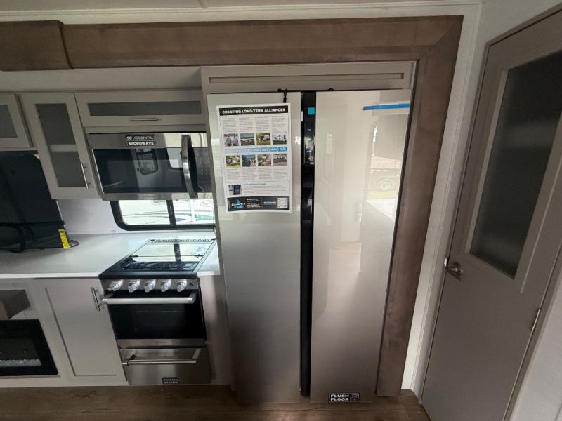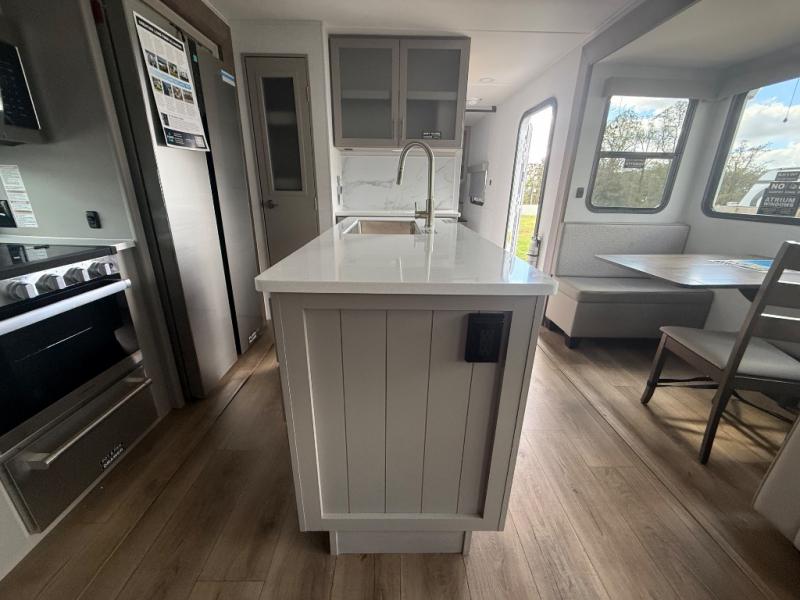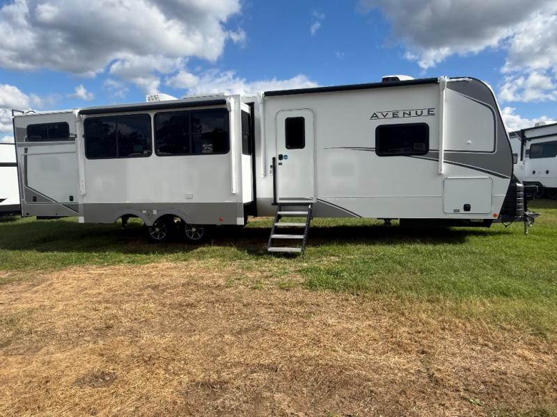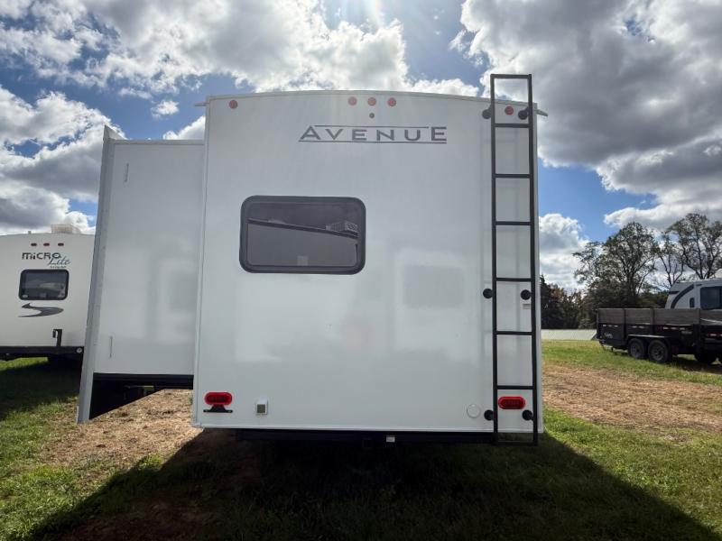 With any Avenue fifth wheel or travel trailer by Alliance RV, you will enjoy more interior space provided by the 8' 5" wide-body construction, and a long list of luxury features. Each is built with Azdel composite sidewalls both inside and out, along with a PVC roof for added strength. There are innovative storage solutions that include hidden storage behind the TV, within end tables and ottomans, and more. Since these units feature no carpet throughout, cleaning will be easier than ever, and there are flush floor slides throughout for seamless living spaces. The Avenue also comes with the OTG Solar Package with a 400 watt solar panel, inverter prep, multiple outlets, and more to keep you charged up!