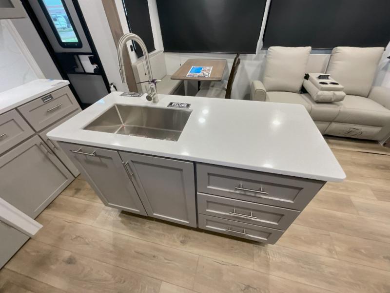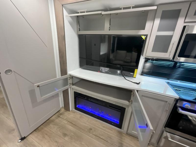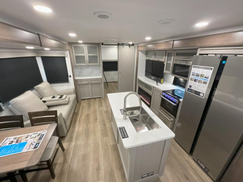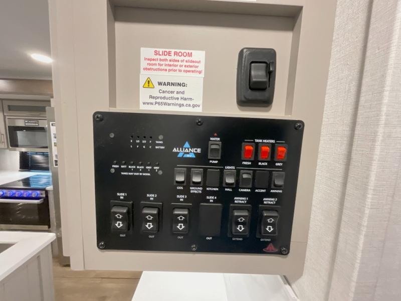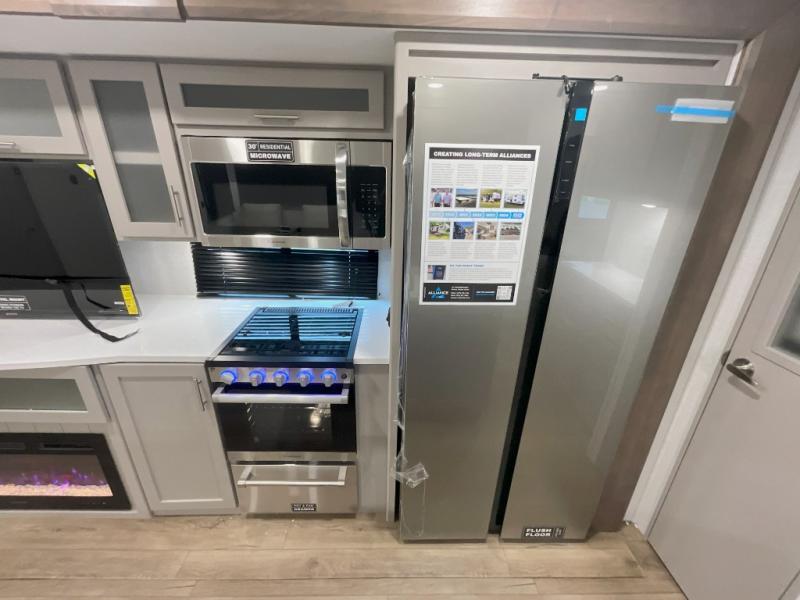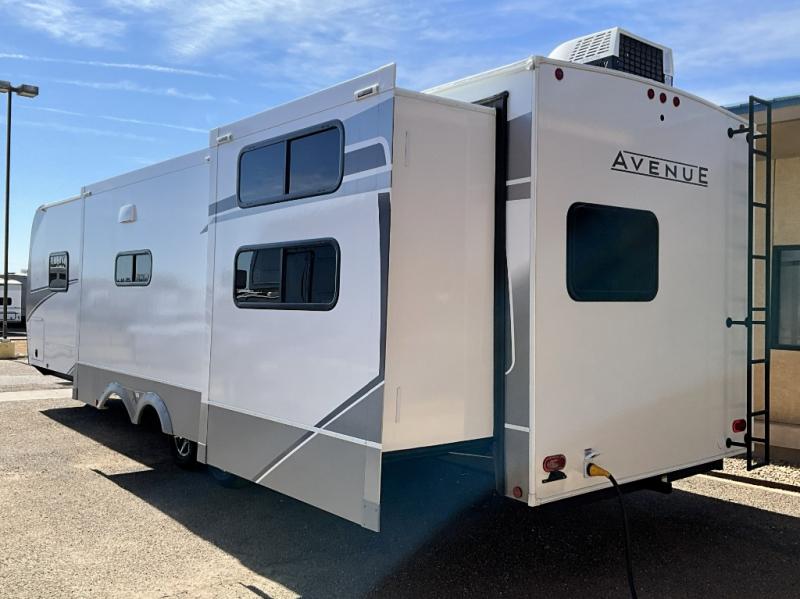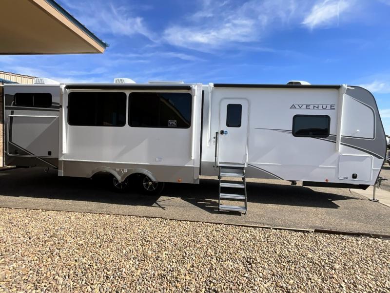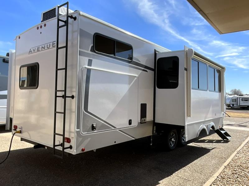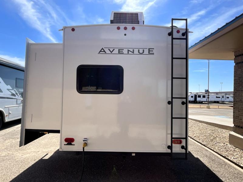 With any Avenue fifth wheel or travel trailer by Alliance RV, you will enjoy more interior space provided by the 8' 5" wide-body construction, and a long list of luxury features. Each is built with Azdel composite sidewalls both inside and out, along with a PVC roof for added strength. There are innovative storage solutions that include hidden storage behind the TV, within end tables and ottomans, and more. Since these units feature no carpet throughout, cleaning will be easier than ever, and there are flush floor slides throughout for seamless living spaces. The Avenue also comes with the OTG Solar Package with a 400 watt solar panel, inverter prep, multiple outlets, and more to keep you charged up!