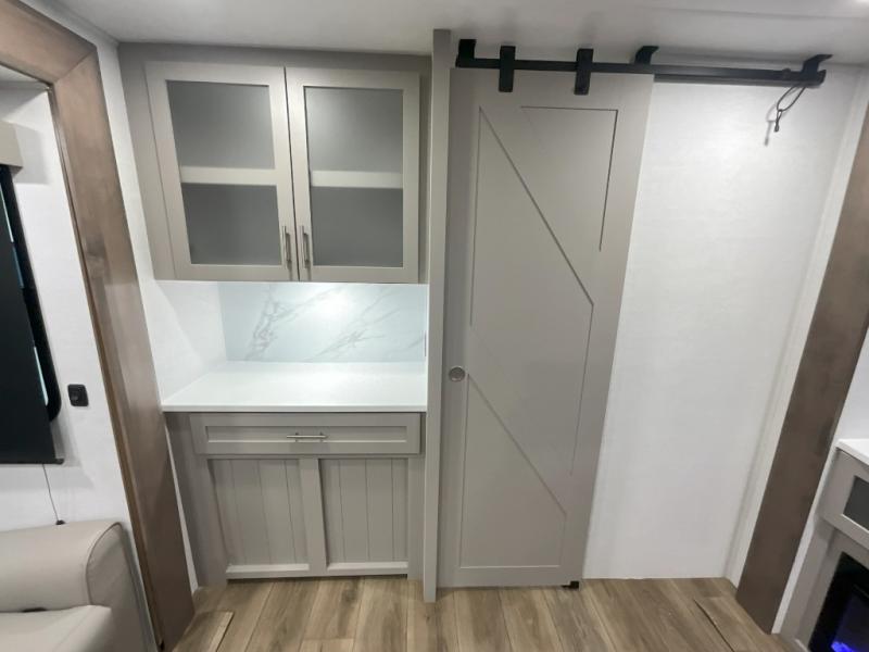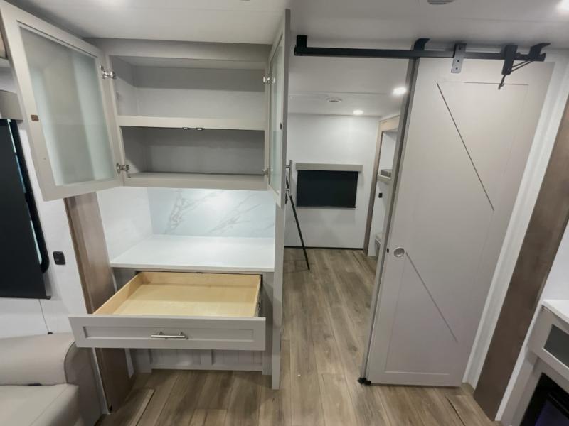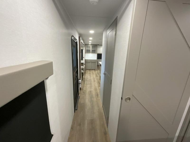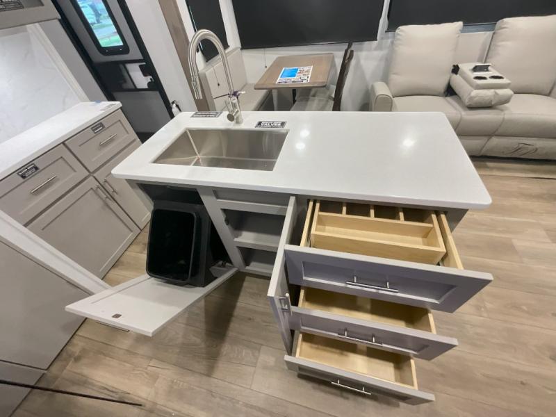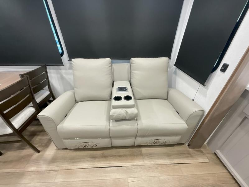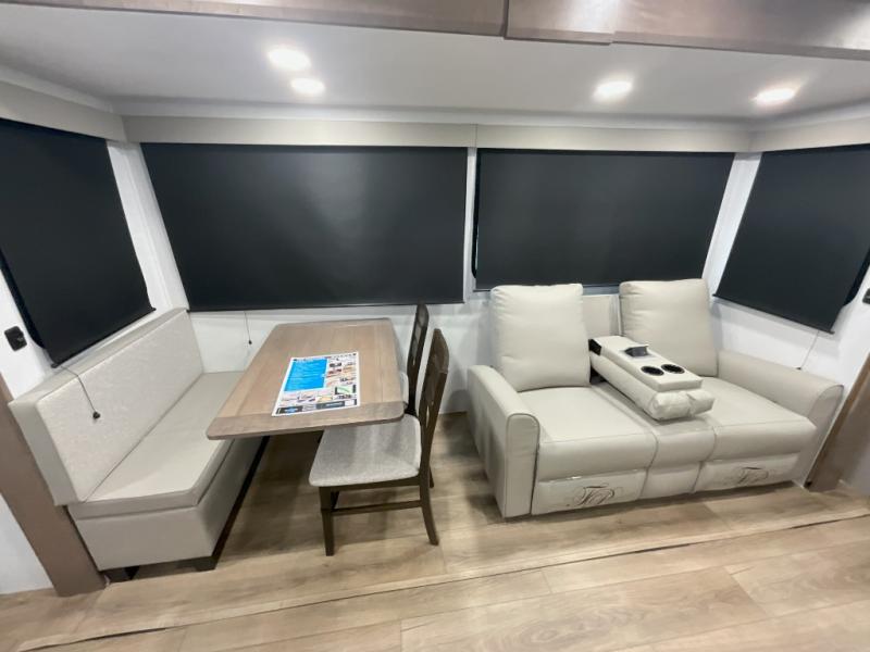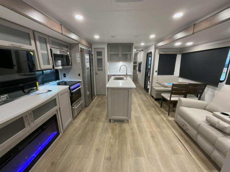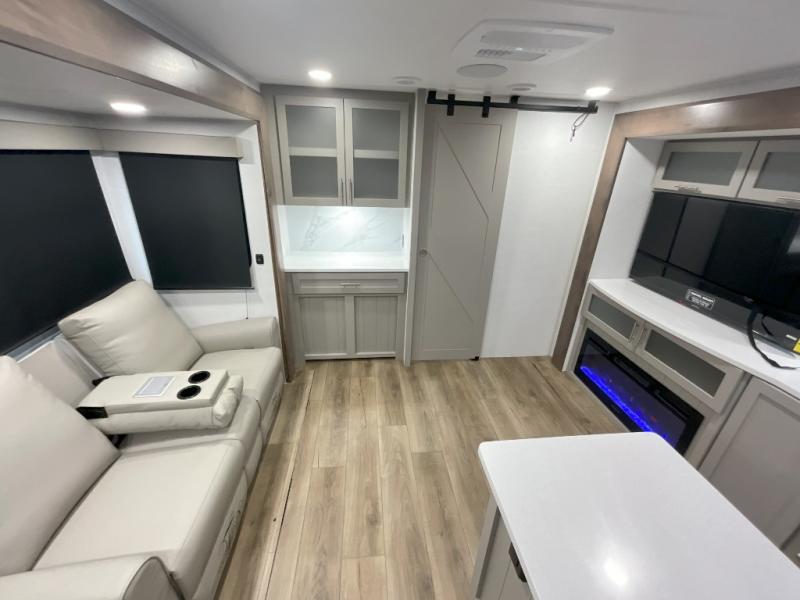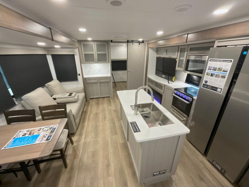 With any Avenue fifth wheel or travel trailer by Alliance RV, you will enjoy more interior space provided by the 8' 5" wide-body construction, and a long list of luxury features. Each is built with Azdel composite sidewalls both inside and out, along with a PVC roof for added strength. There are innovative storage solutions that include hidden storage behind the TV, within end tables and ottomans, and more. Since these units feature no carpet throughout, cleaning will be easier than ever, and there are flush floor slides throughout for seamless living spaces. The Avenue also comes with the OTG Solar Package with a 400 watt solar panel, inverter prep, multiple outlets, and more to keep you charged up!