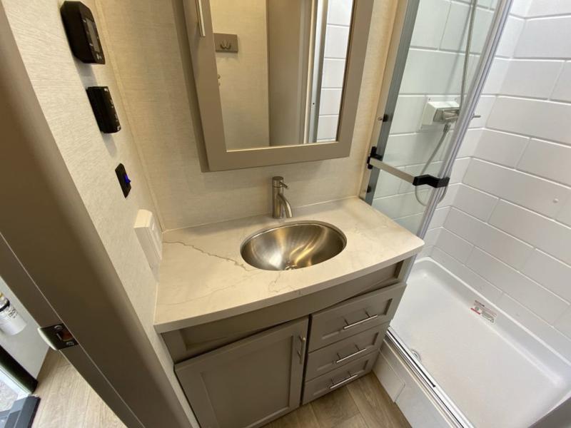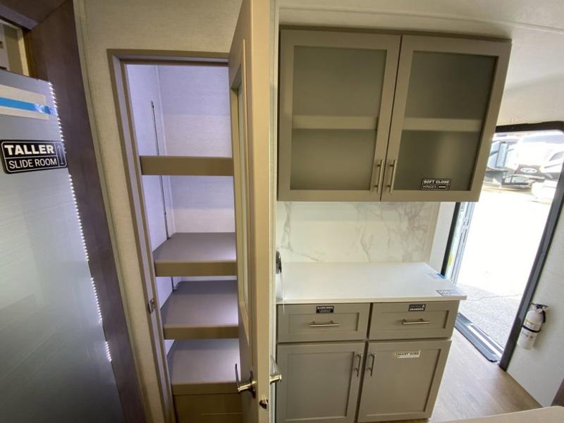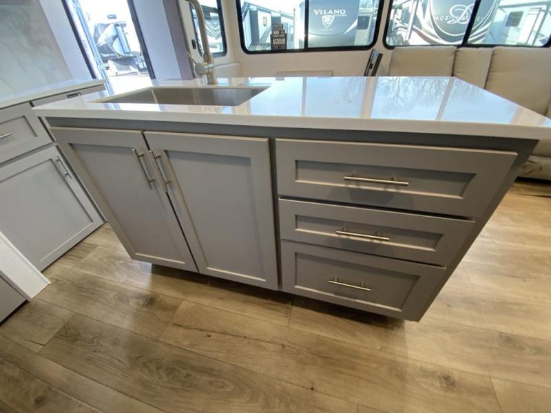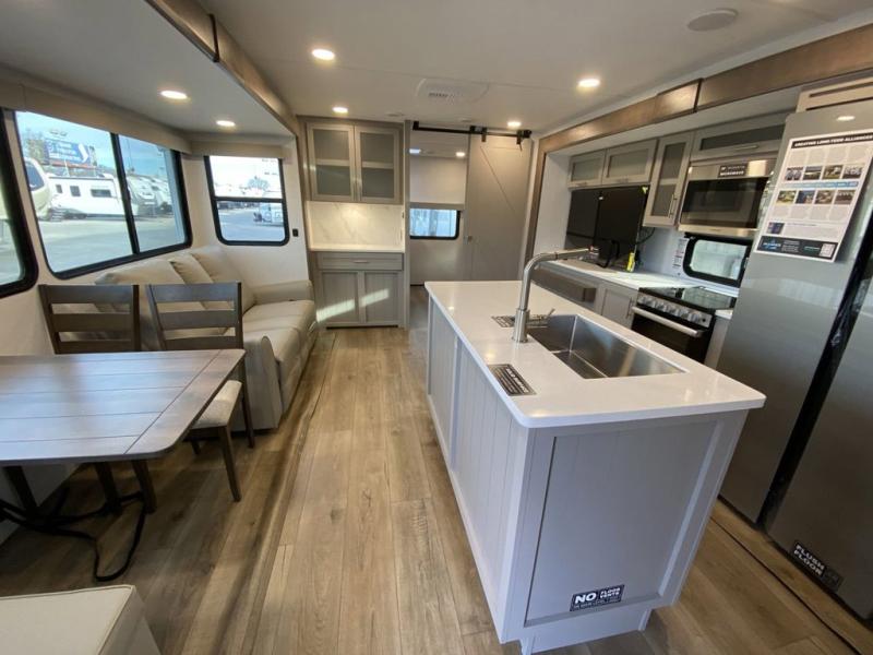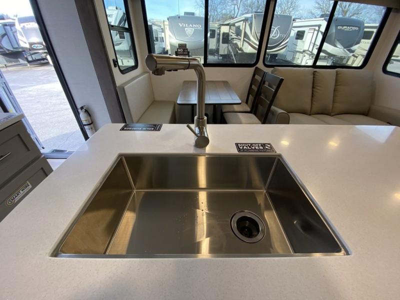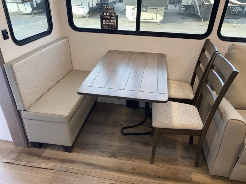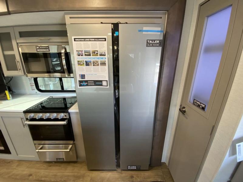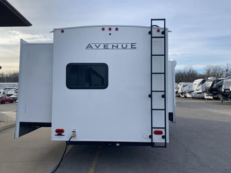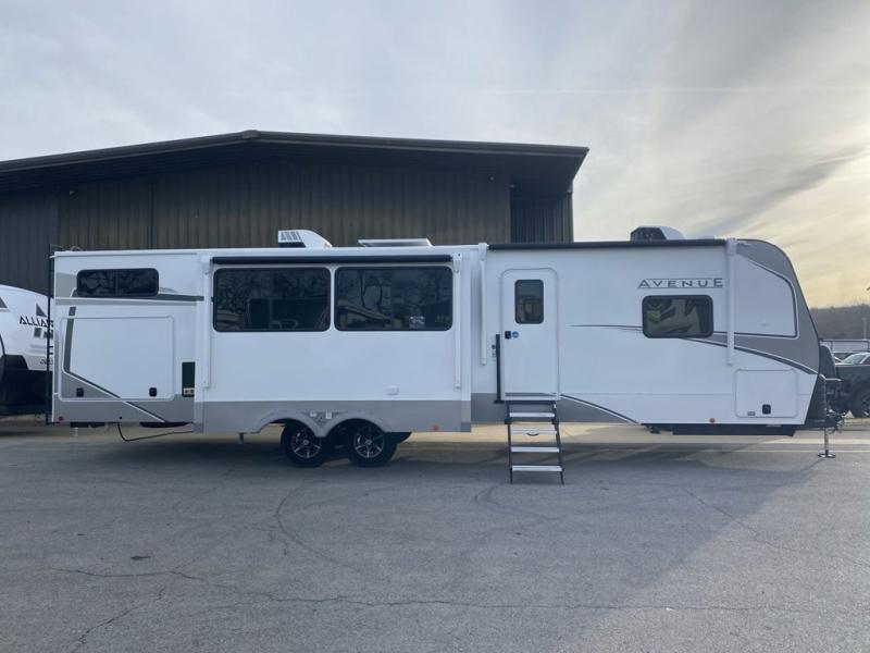 With any Avenue fifth wheel or travel trailer by Alliance RV, you will enjoy more interior space provided by the 8' 5" wide-body construction, and a long list of luxury features. Each is built with Azdel composite sidewalls both inside and out, along with a PVC roof for added strength. There are innovative storage solutions that include hidden storage behind the TV, within end tables and ottomans, and more. Since these units feature no carpet throughout, cleaning will be easier than ever, and there are flush floor slides throughout for seamless living spaces. The Avenue also comes with the OTG Solar Package with a 400 watt solar panel, inverter prep, multiple outlets, and more to keep you charged up!