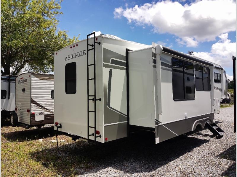 With any Avenue fifth wheel or travel trailer by Alliance RV, you will enjoy more interior space provided by the 8' 5" wide-body construction, and a long list of luxury features. Each is built with Azdel composite sidewalls both inside and out, along with a PVC roof for added strength. There are innovative storage solutions that include hidden storage behind the TV, within end tables and ottomans, and more. Since these units feature no carpet throughout, cleaning will be easier than ever, and there are flush floor slides throughout for seamless living spaces. The Avenue also comes with the OTG Solar Package with a 400 watt solar panel, inverter prep, multiple outlets, and more to keep you charged up!