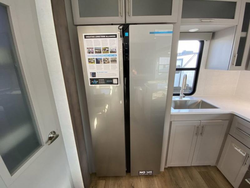 With any Avenue fifth wheel or travel trailer by Alliance RV, you will enjoy more interior space provided by the 8' 5" wide-body construction, and a long list of luxury features. Each is built with Azdel composite sidewalls both inside and out, along with a PVC roof for added strength. There are innovative storage solutions that include hidden storage behind the TV, within end tables and ottomans, and more. Since these units feature no carpet throughout, cleaning will be easier than ever, and there are flush floor slides throughout for seamless living spaces. The Avenue also comes with the OTG Solar Package with a 400 watt solar panel, inverter prep, multiple outlets, and more to keep you charged up!