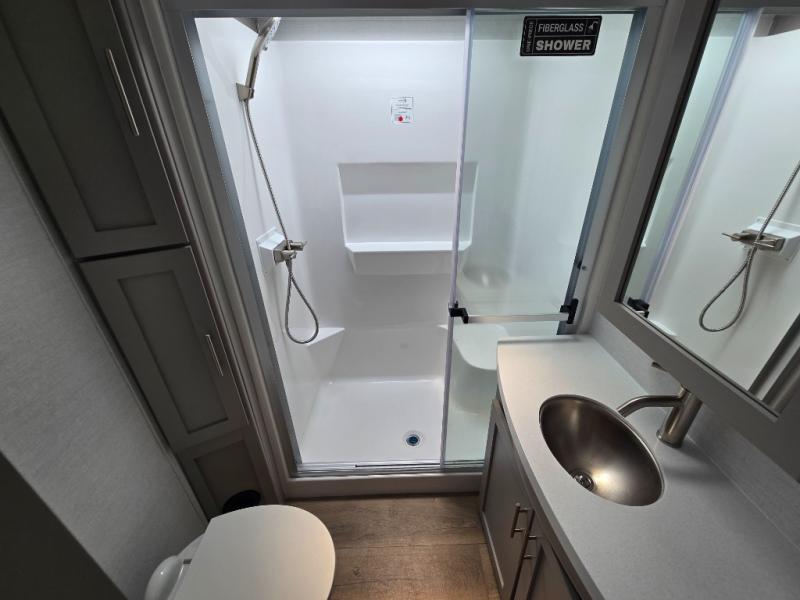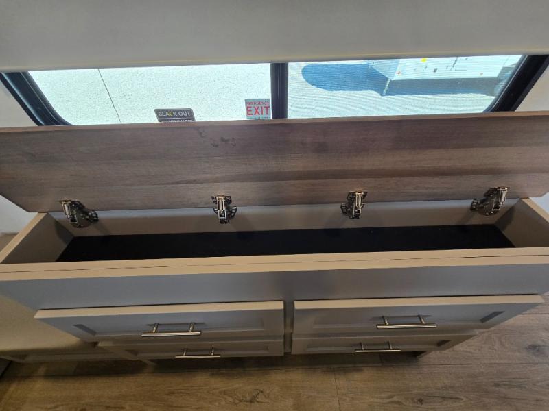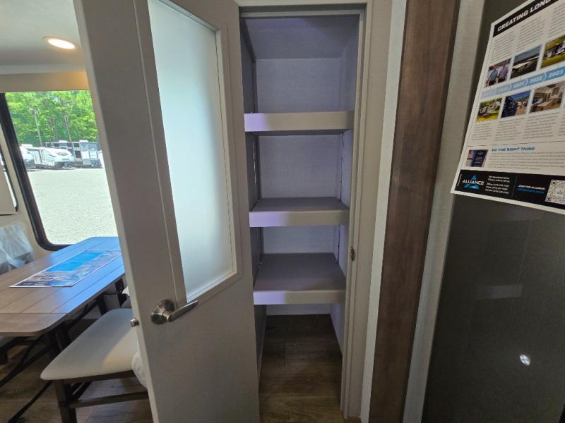 With any Avenue fifth wheel or travel trailer by Alliance RV, you will enjoy more interior space provided by the 8' 5" wide-body construction, and a long list of luxury features. Each is built with Azdel composite sidewalls both inside and out, along with a PVC roof for added strength. There are innovative storage solutions that include hidden storage behind the TV, within end tables and ottomans, and more. Since these units feature no carpet throughout, cleaning will be easier than ever, and there are flush floor slides throughout for seamless living spaces. The Avenue also comes with the OTG Solar Package with a 400 watt solar panel, inverter prep, multiple outlets, and more to keep you charged up!