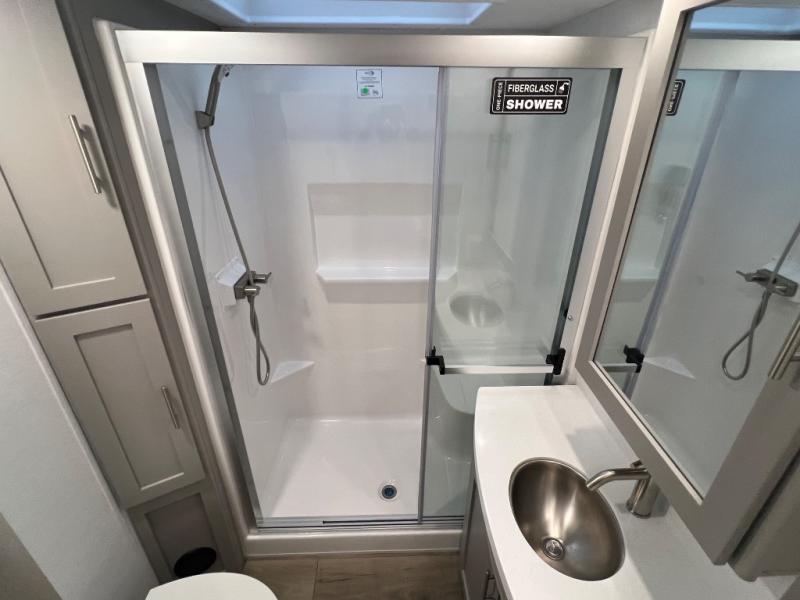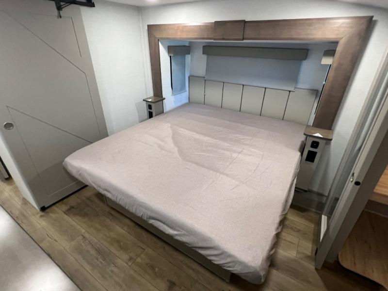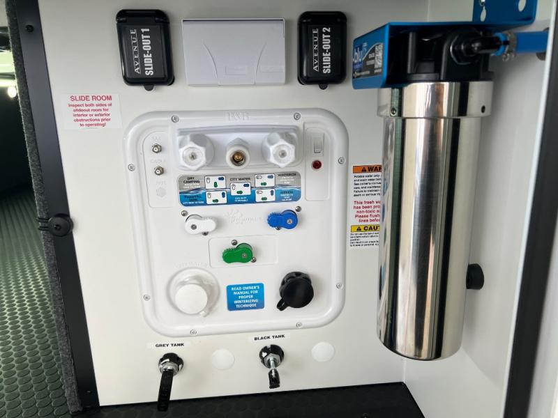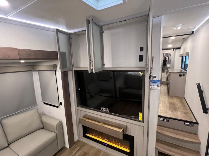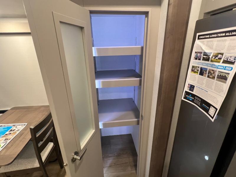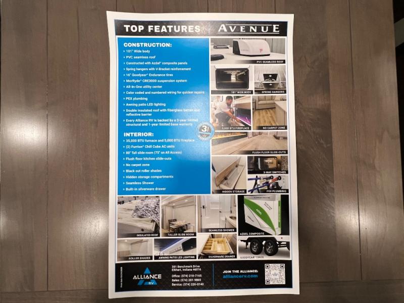 With any Avenue fifth wheel or travel trailer by Alliance RV, you will enjoy more interior space provided by the 8' 5" wide-body construction, and a long list of luxury features. Each is built with Azdel composite sidewalls both inside and out, along with a PVC roof for added strength. There are innovative storage solutions that include hidden storage behind the TV, within end tables and ottomans, and more. Since these units feature no carpet throughout, cleaning will be easier than ever, and there are flush floor slides throughout for seamless living spaces. The Avenue also comes with the OTG Solar Package with a 400 watt solar panel, inverter prep, multiple outlets, and more to keep you charged up!