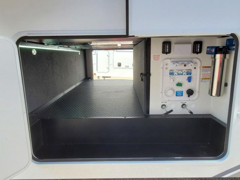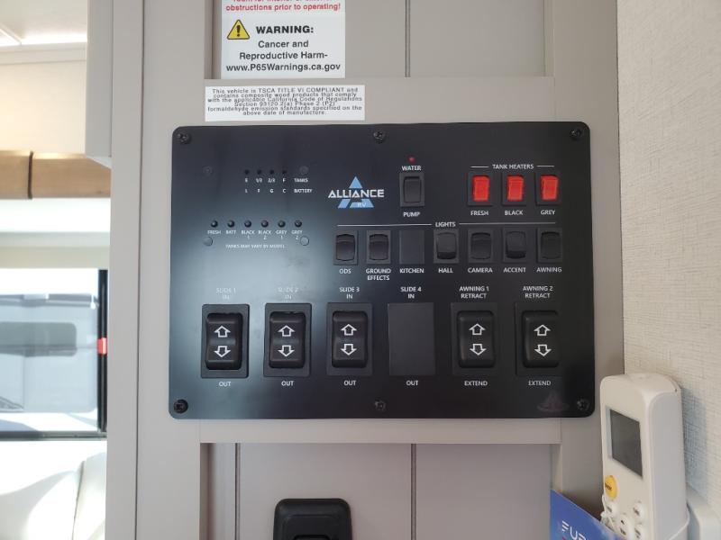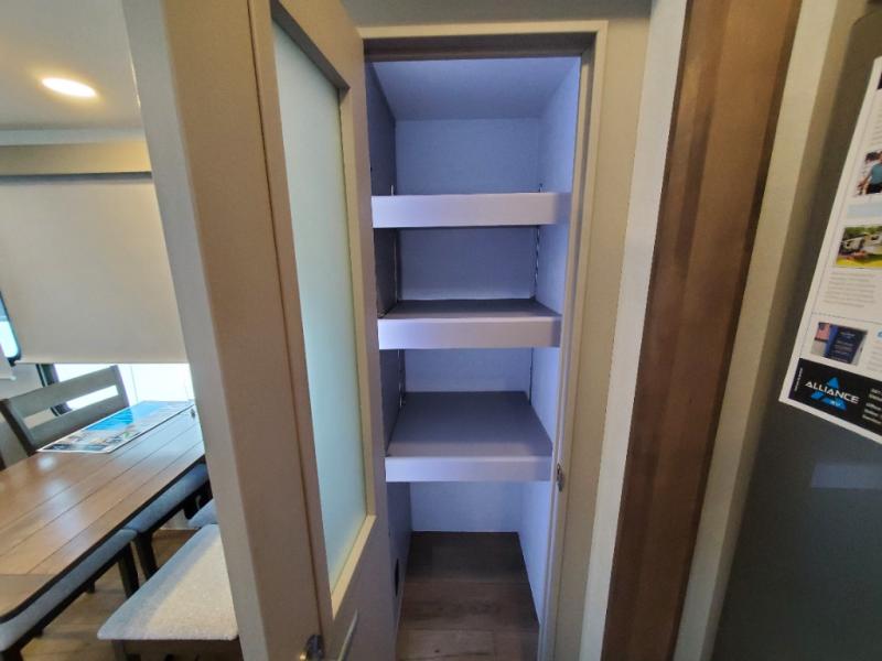 With any Avenue fifth wheel or travel trailer by Alliance RV, you will enjoy more interior space provided by the 8' 5" wide-body construction, and a long list of luxury features. Each is built with Azdel composite sidewalls both inside and out, along with a PVC roof for added strength. There are innovative storage solutions that include hidden storage behind the TV, within end tables and ottomans, and more. Since these units feature no carpet throughout, cleaning will be easier than ever, and there are flush floor slides throughout for seamless living spaces. The Avenue also comes with the OTG Solar Package with a 400 watt solar panel, inverter prep, multiple outlets, and more to keep you charged up!