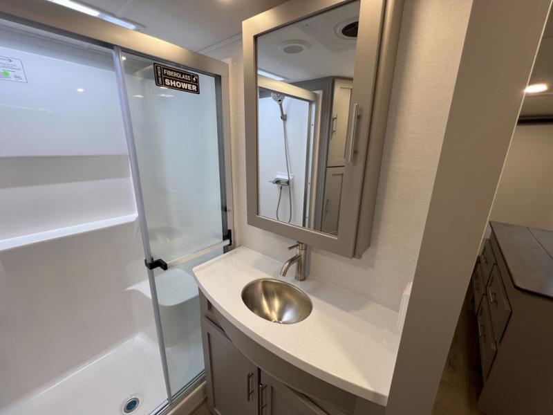 With any Avenue fifth wheel or travel trailer by Alliance RV, you will enjoy more interior space provided by the 8' 5" wide-body construction, and a long list of luxury features. Each is built with Azdel composite sidewalls both inside and out, along with a PVC roof for added strength. There are innovative storage solutions that include hidden storage behind the TV, within end tables and ottomans, and more. Since these units feature no carpet throughout, cleaning will be easier than ever, and there are flush floor slides throughout for seamless living spaces. The Avenue also comes with the OTG Solar Package with a 400 watt solar panel, inverter prep, multiple outlets, and more to keep you charged up!