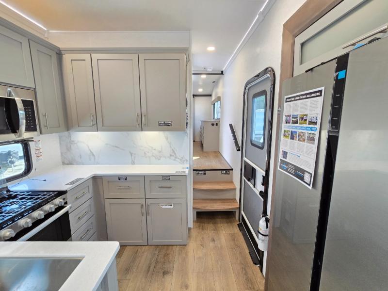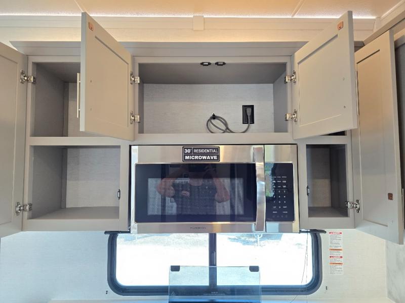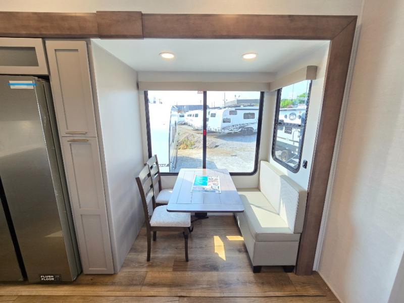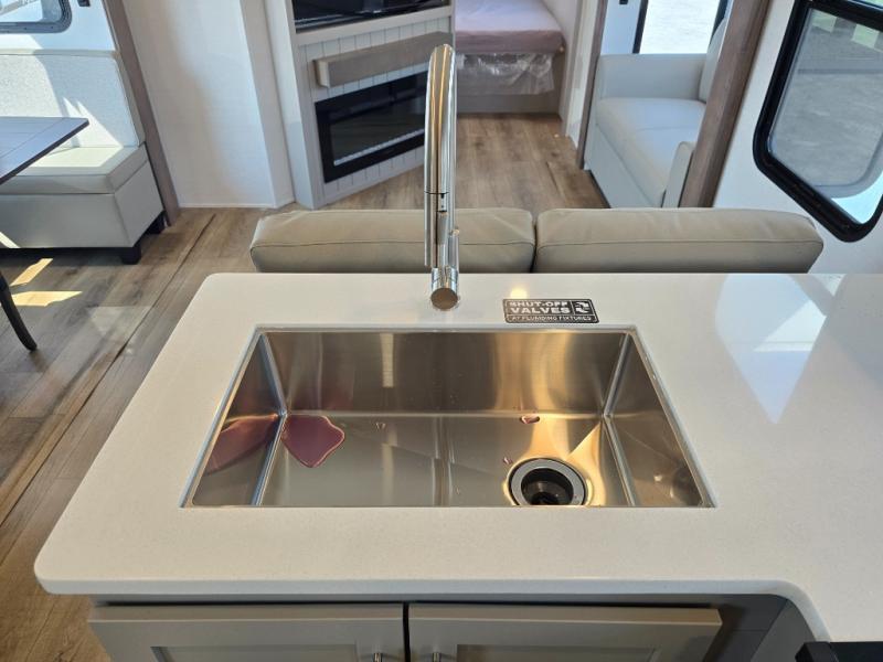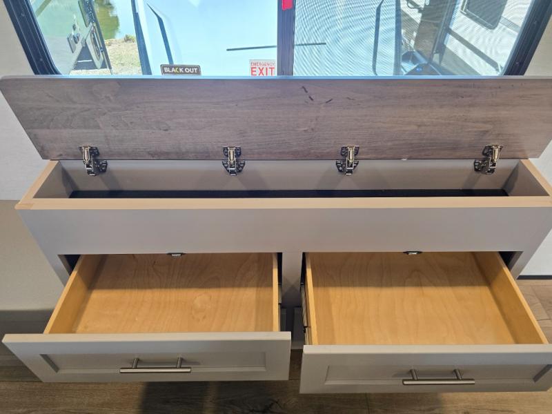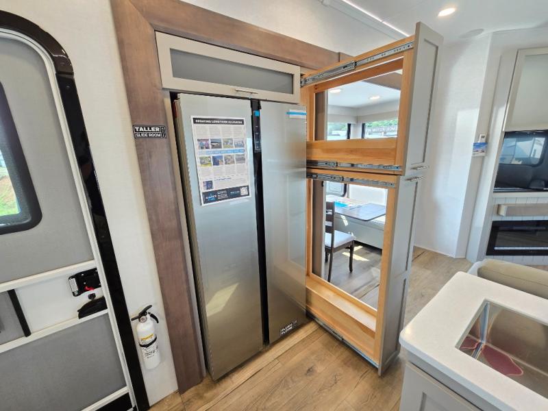With any Avenue fifth wheel or travel trailer by Alliance RV, you will enjoy more interior space provided by the 8' 5" wide-body construction, and a long list of luxury features. Each is built with Azdel composite sidewalls both inside and out, along with a PVC roof for added strength. There are innovative storage solutions that include hidden storage behind the TV, within end tables and ottomans, and more. Since these units feature no carpet throughout, cleaning will be easier than ever, and there are flush floor slides throughout for seamless living spaces. The Avenue also comes with the OTG Solar Package with a 400 watt solar panel, inverter prep, multiple outlets, and more to keep you charged up!