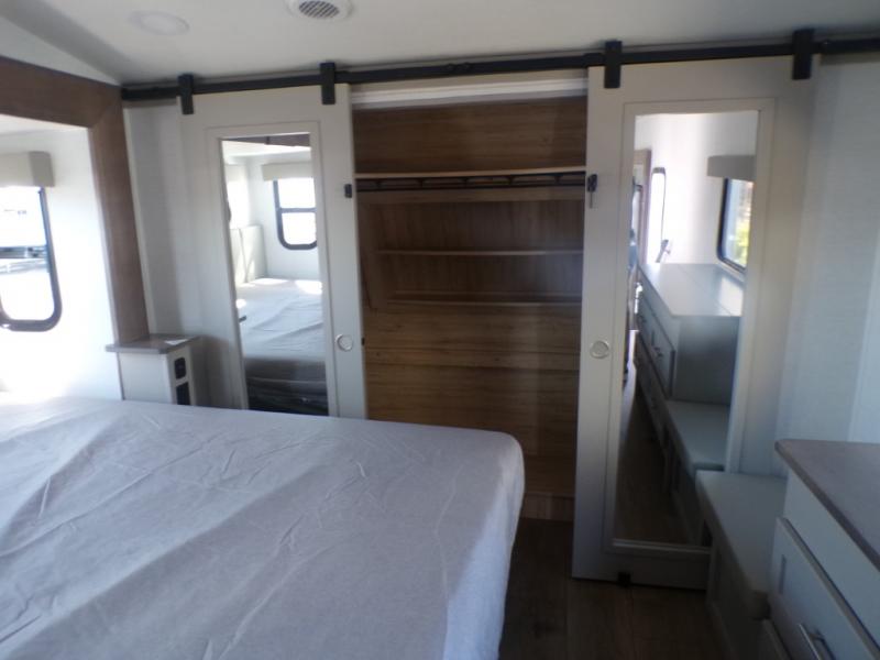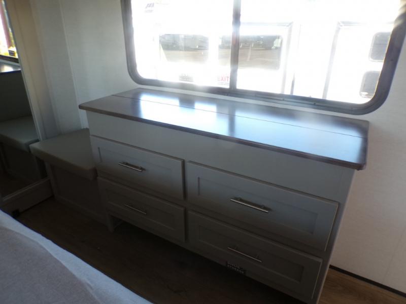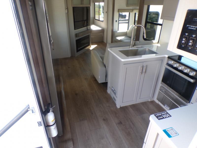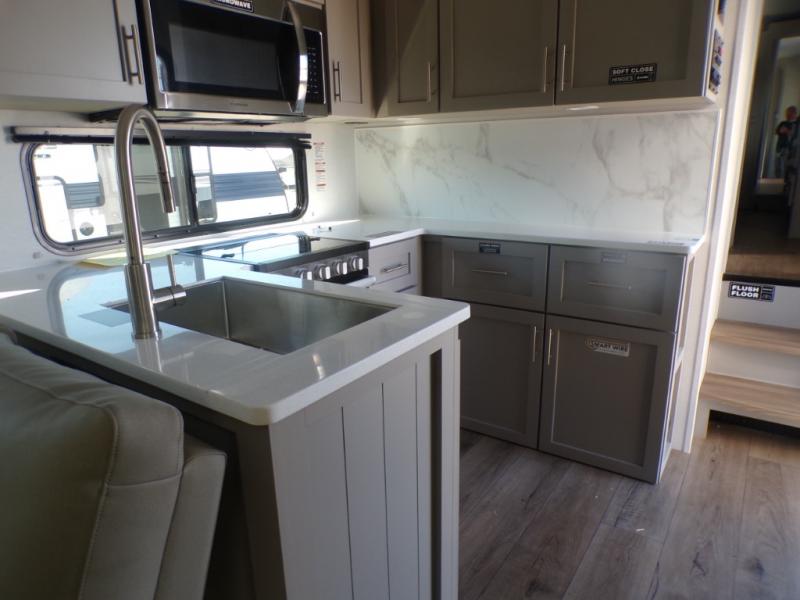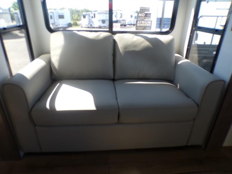 With any Avenue fifth wheel or travel trailer by Alliance RV, you will enjoy more interior space provided by the 8' 5" wide-body construction, and a long list of luxury features. Each is built with Azdel composite sidewalls both inside and out, along with a PVC roof for added strength. There are innovative storage solutions that include hidden storage behind the TV, within end tables and ottomans, and more. Since these units feature no carpet throughout, cleaning will be easier than ever, and there are flush floor slides throughout for seamless living spaces. The Avenue also comes with the OTG Solar Package with a 400 watt solar panel, inverter prep, multiple outlets, and more to keep you charged up!